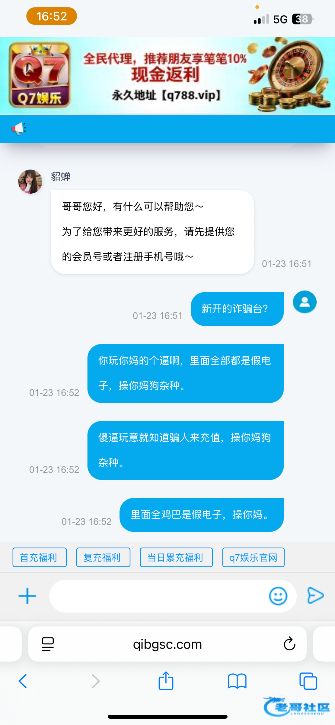这个我也接到过电话了,我还特意在论坛搜了没有这个台子,然后我也没充值