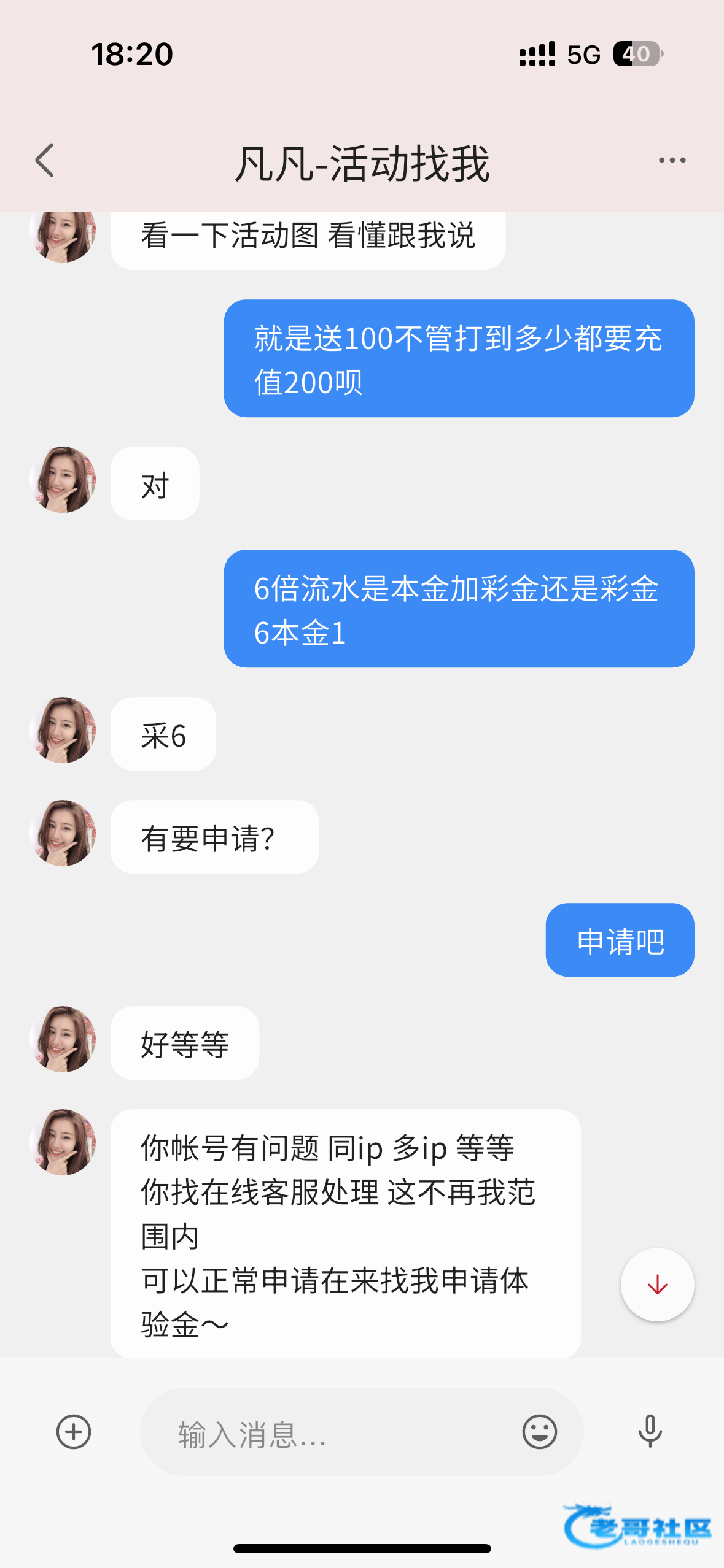 maqun68 ▶ 大鹏一日同风起 好几天前存上200打了一倍流水。不给出款。那客服凡凡说要和送的100,一起打6倍流水,就是1800得流水,杀没了 1月前