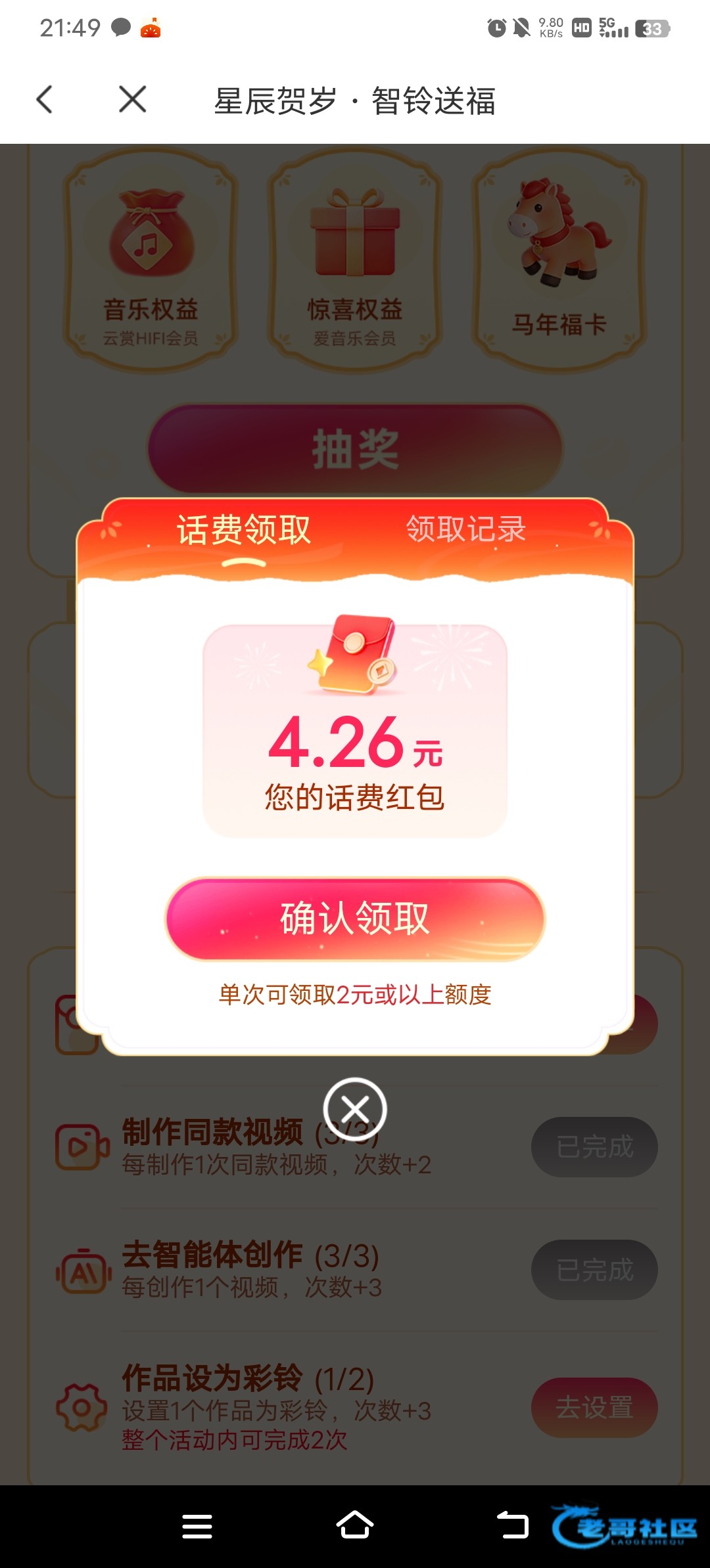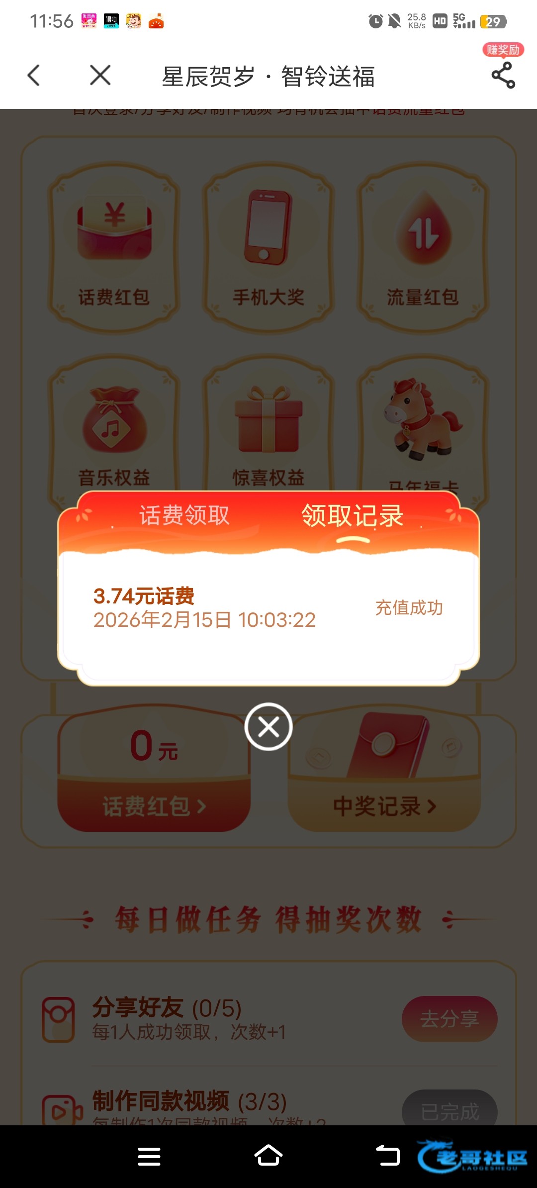 完成了三次任务,3.52话费