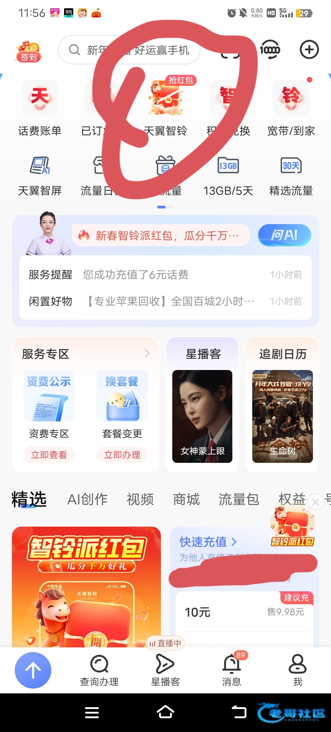 感谢2.6话费