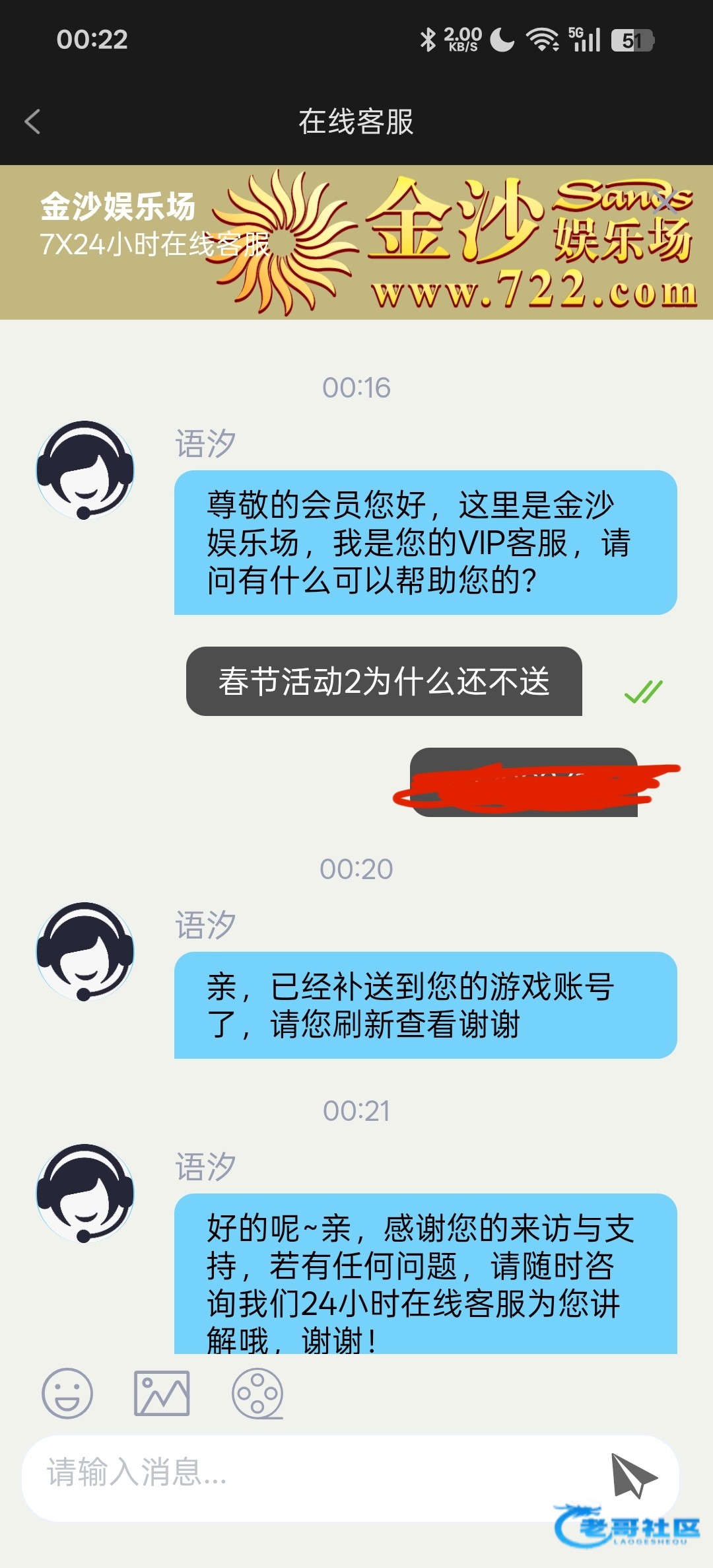 没送的直接去有奖反馈去反馈,反馈了送了登录的22,还有采纳的彩金,我给了26+38,我的号是正常充值娱乐的