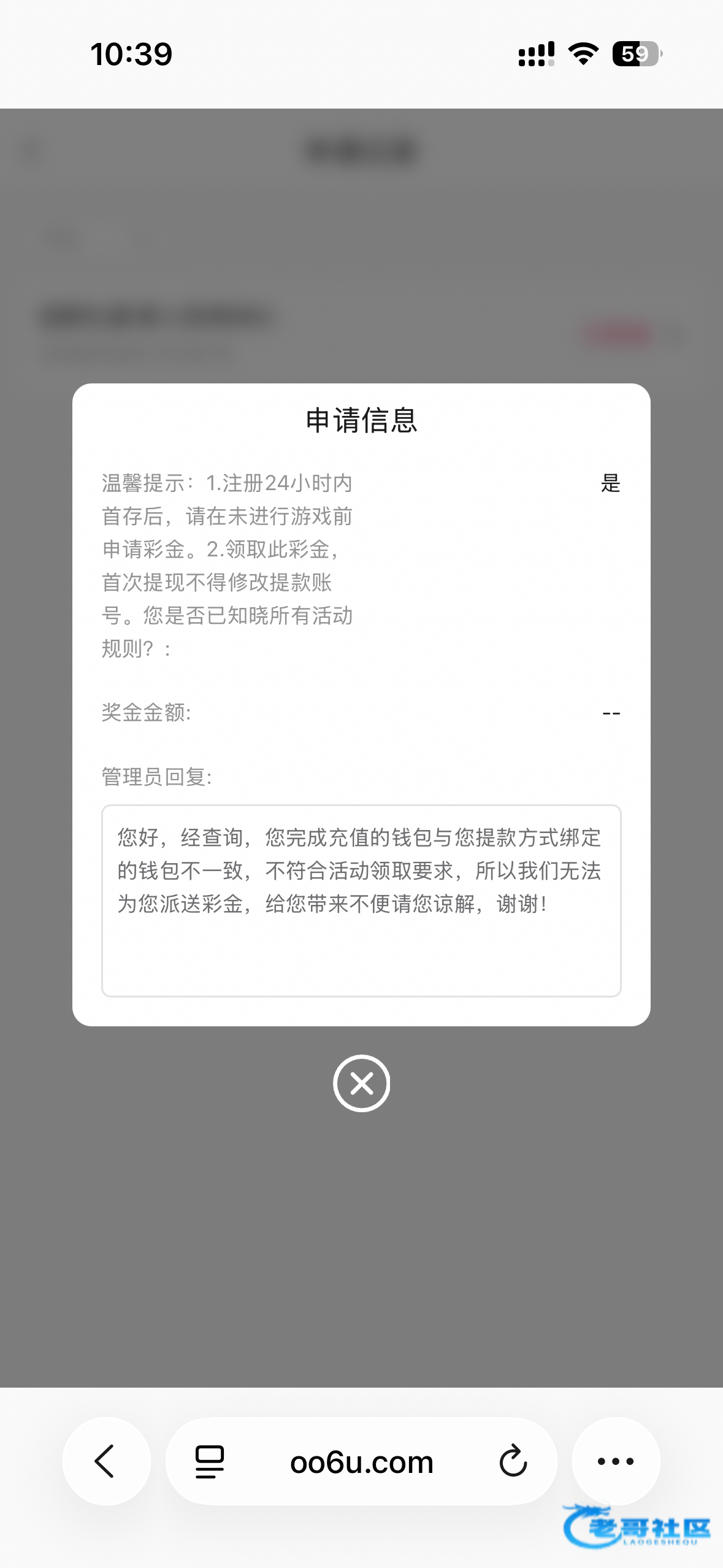 申请中出楼主,申请就是账号不符合,被反撸10u