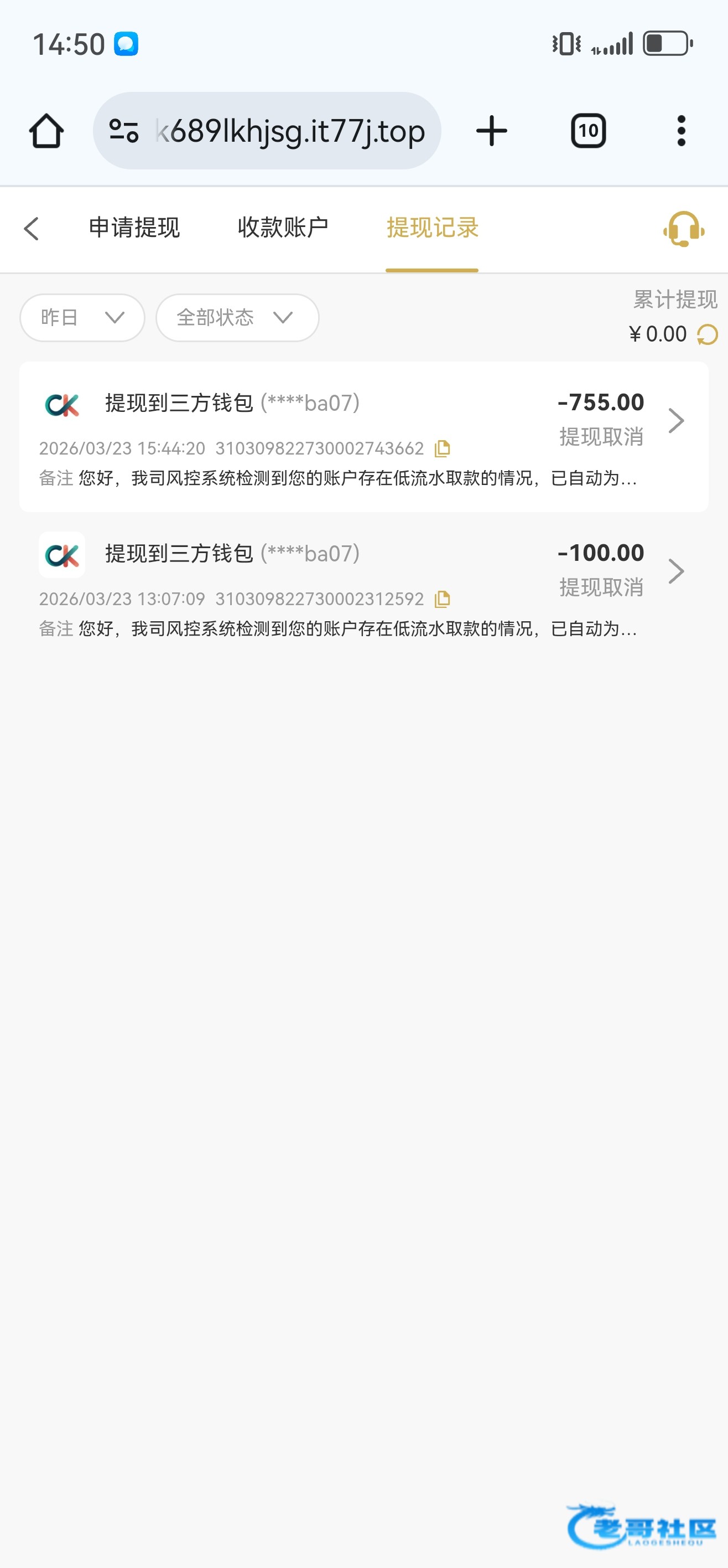 充一百提一百罚了五倍流水。打了3000流水提750又罚五倍流水,无限循环