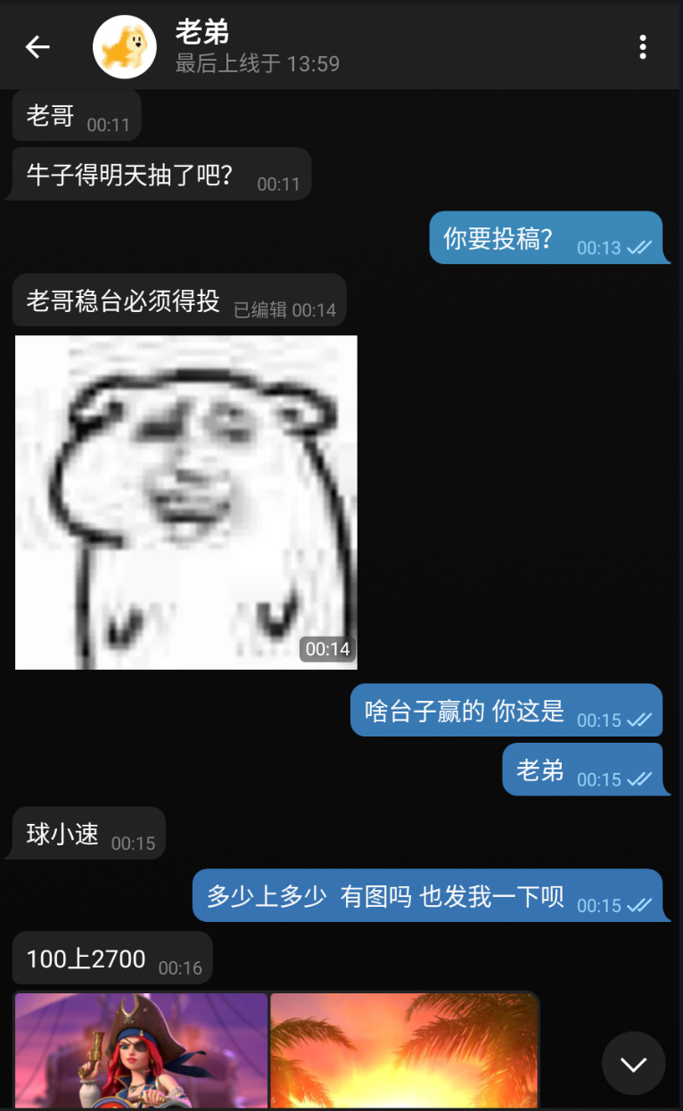 【球速】老弟小赚2700投稿抽15发财牛!