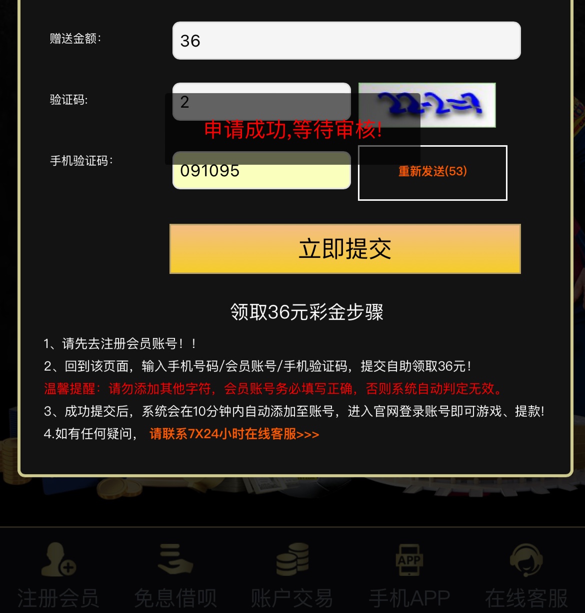 你自己白嫖到的彩金截图发一下