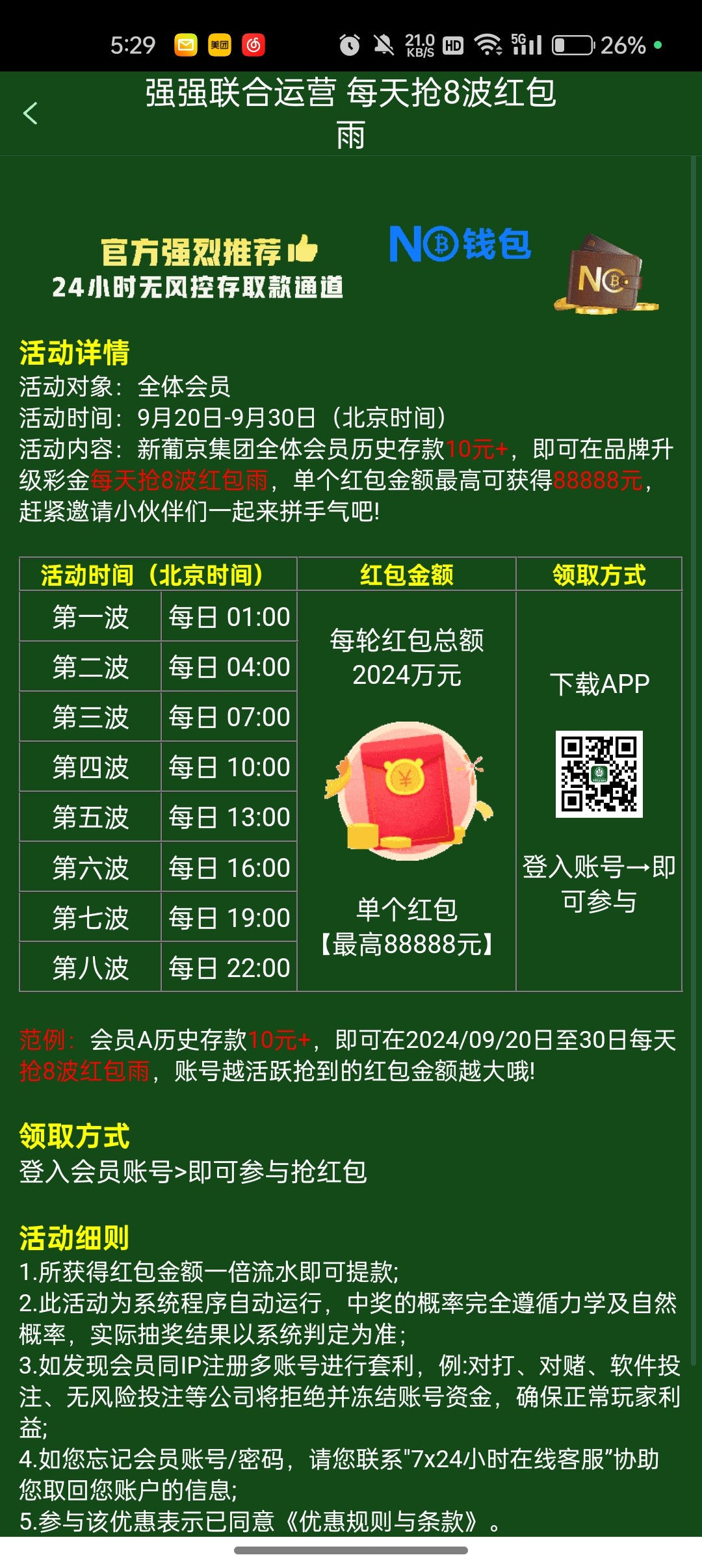 时间看图,历史存过10块钱以上都能抢,每天八次,一倍水,钱能10块钱就能提,刚刚亲测领了1.55打了50提到账了,薅到的兄弟给个牛子---连接:081.com