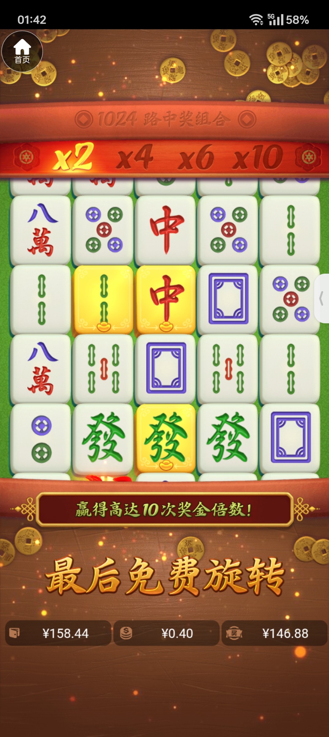 一点水也没有 卡5次胡 没了