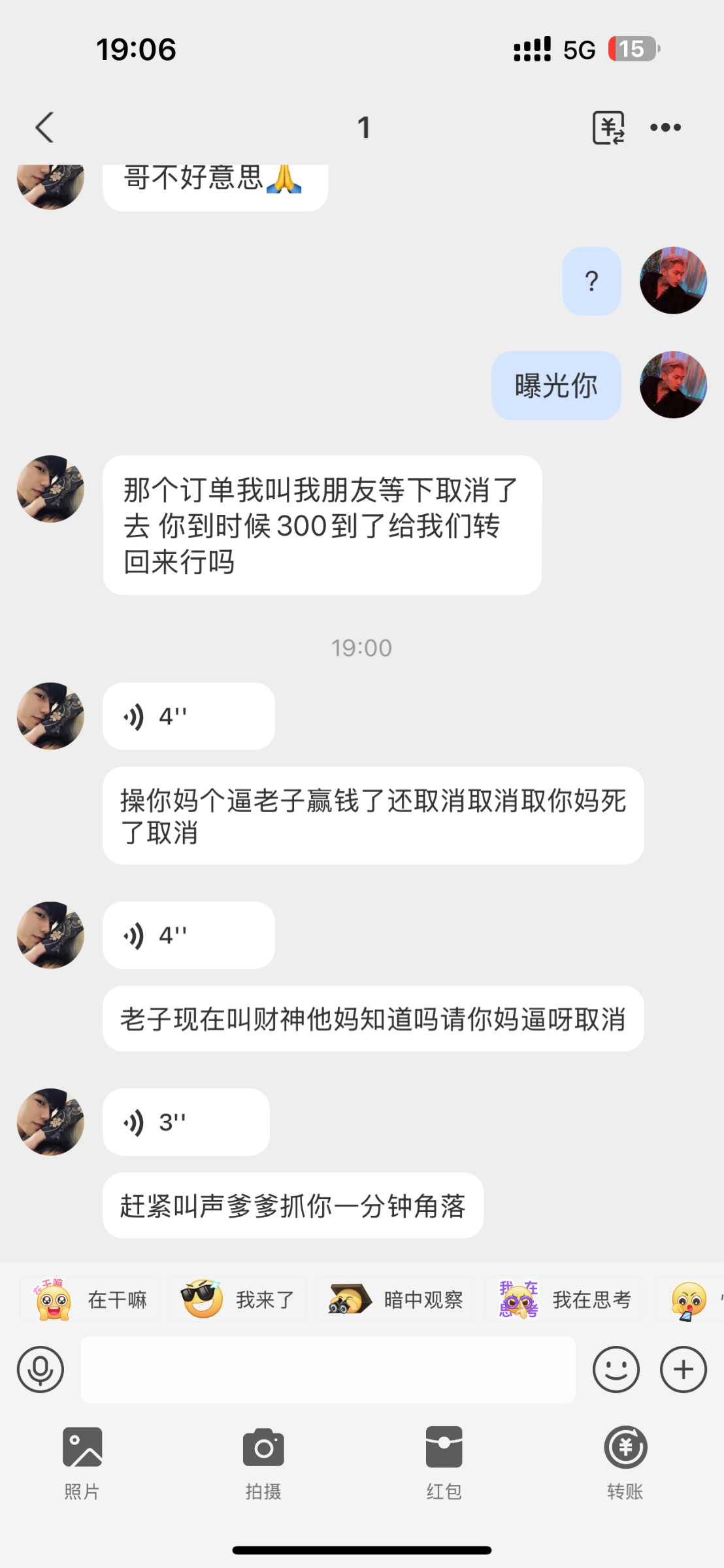 我帮你骂了他几句话他给我挂了