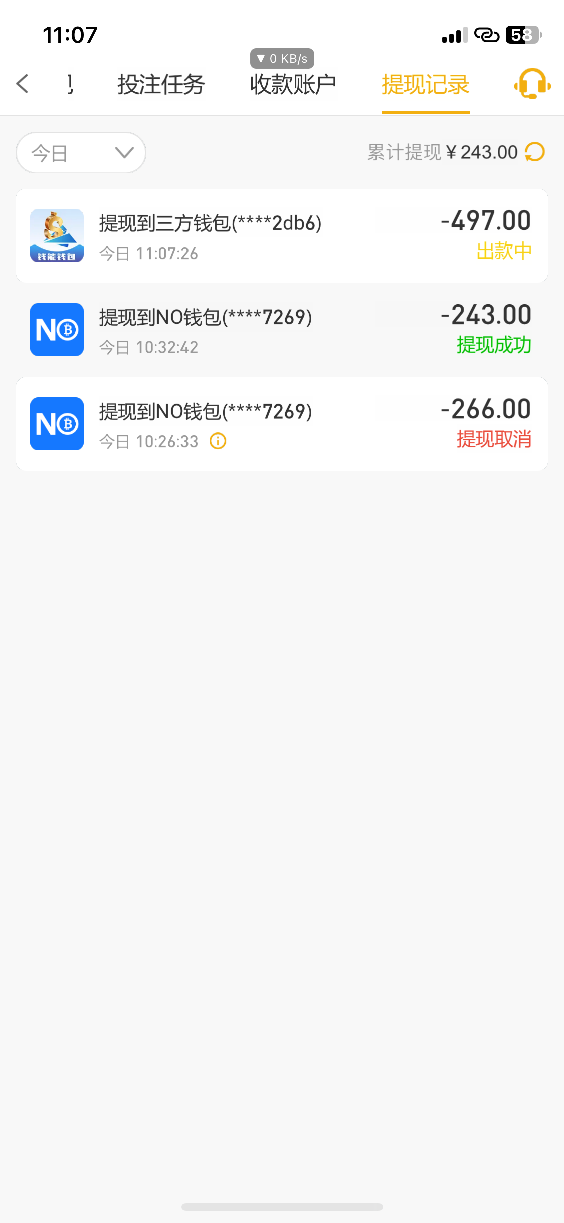 踢了200等到账