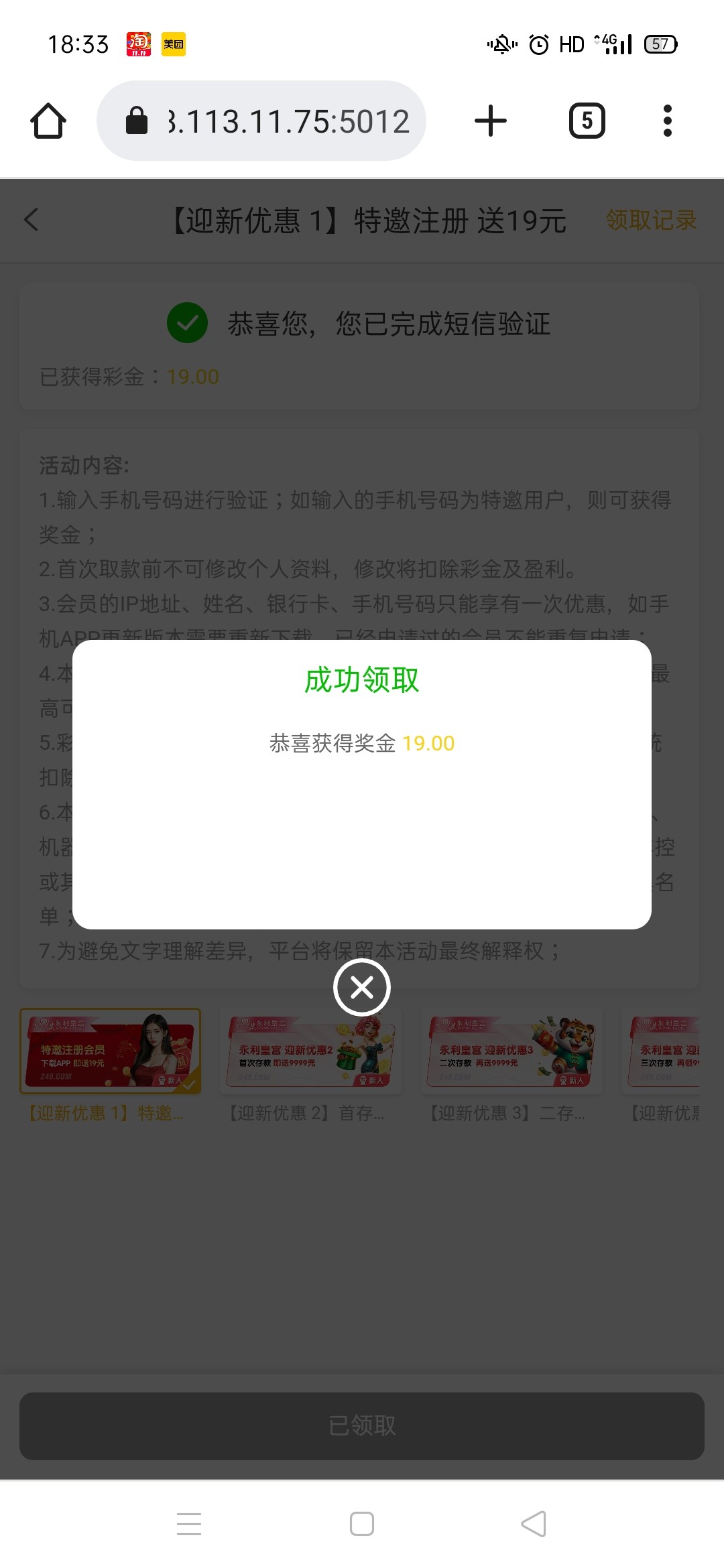 兄弟们我是收到短信的 你们也可以去碰了试试看