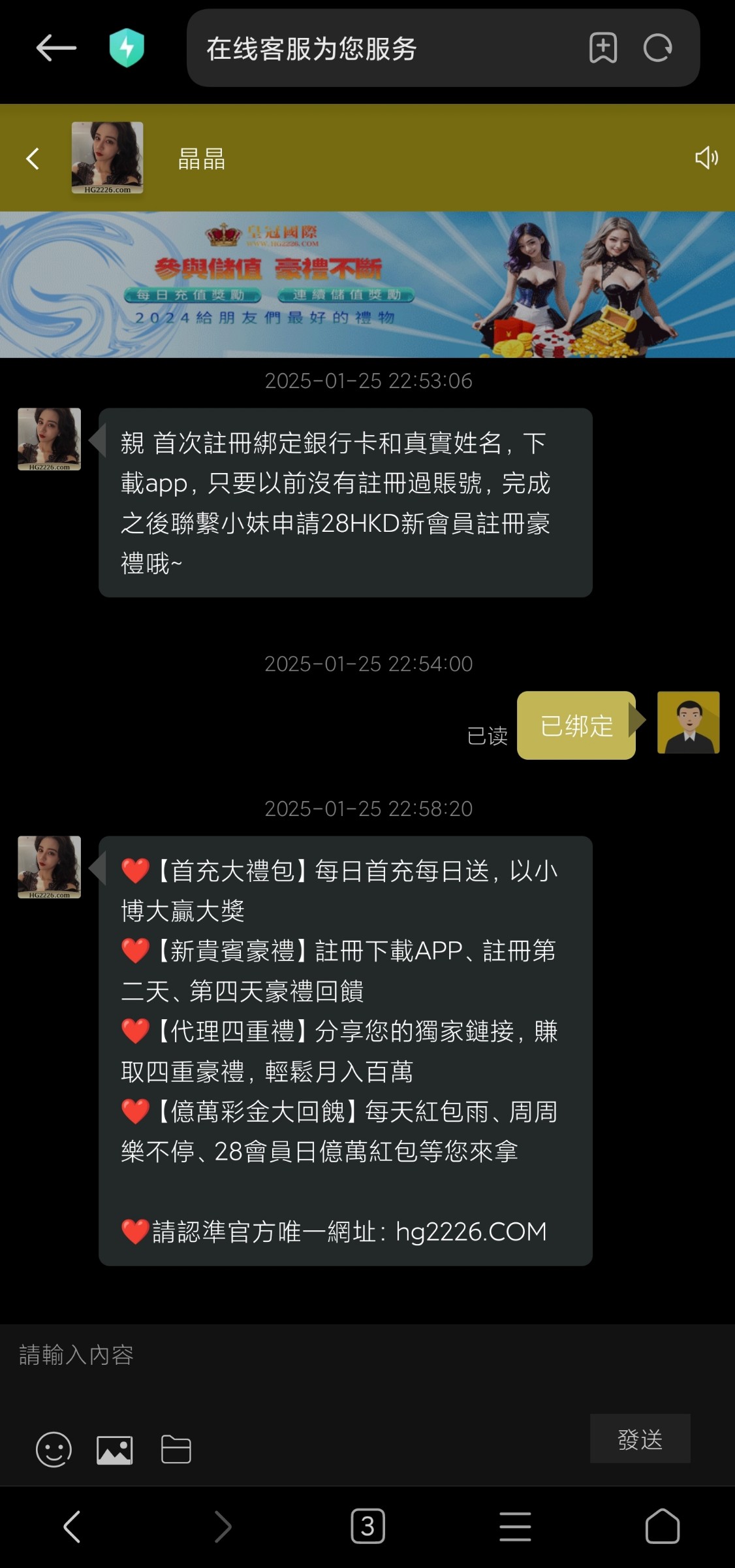 今天无聊试试备忘录的链接,进去一看注册送28。我绑卡送了没打出来。要是能出的兄弟,评论一下。官网:hg2226.com