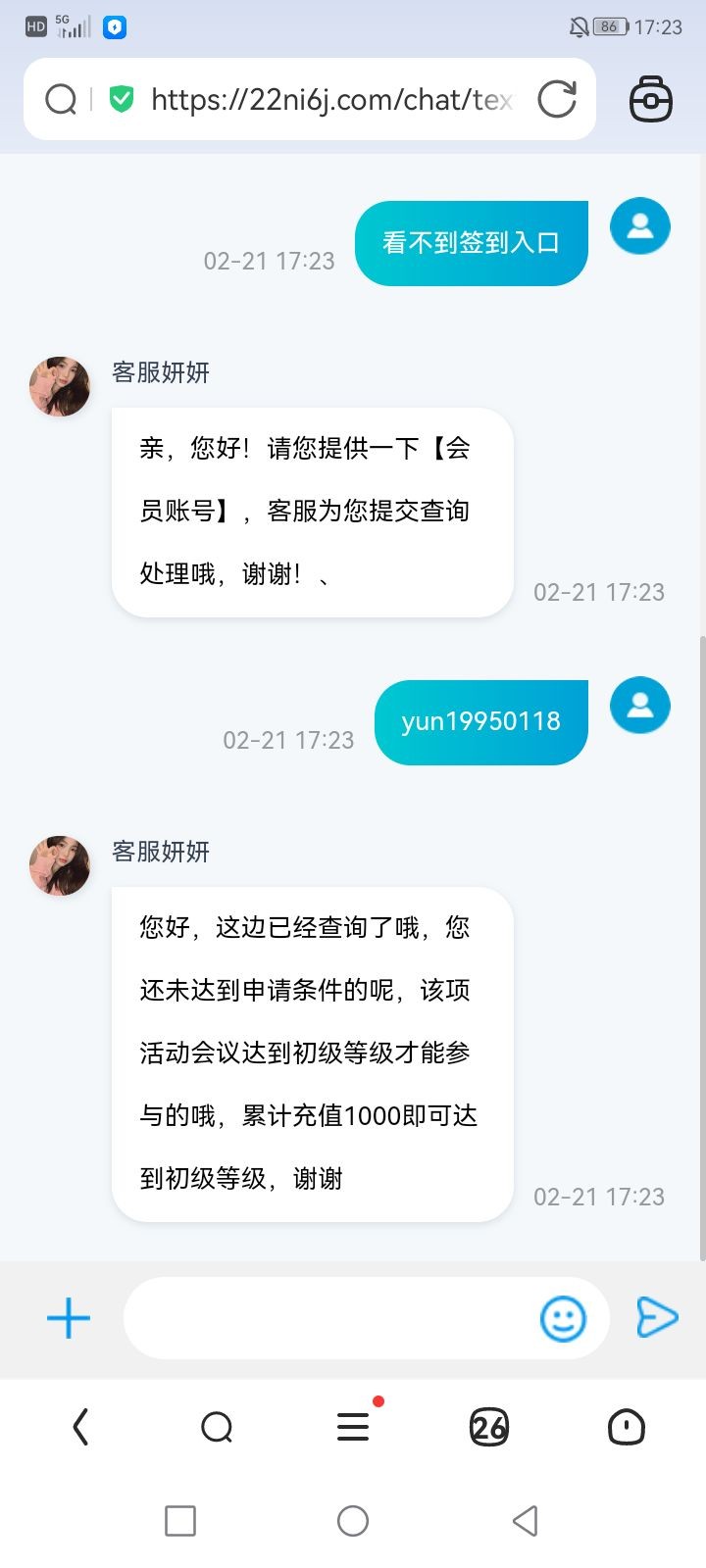问过客服了,充值1000才能达到初始等级,参与签到