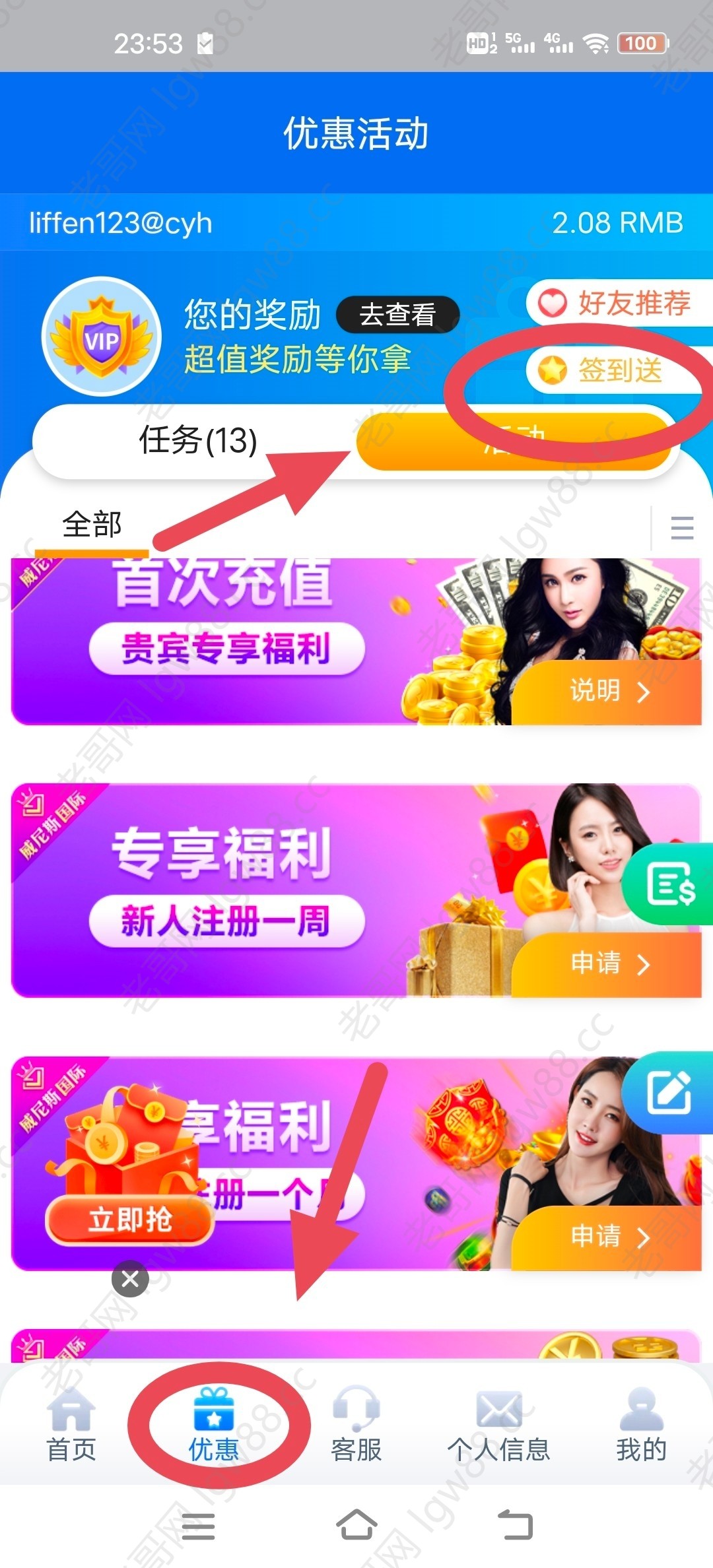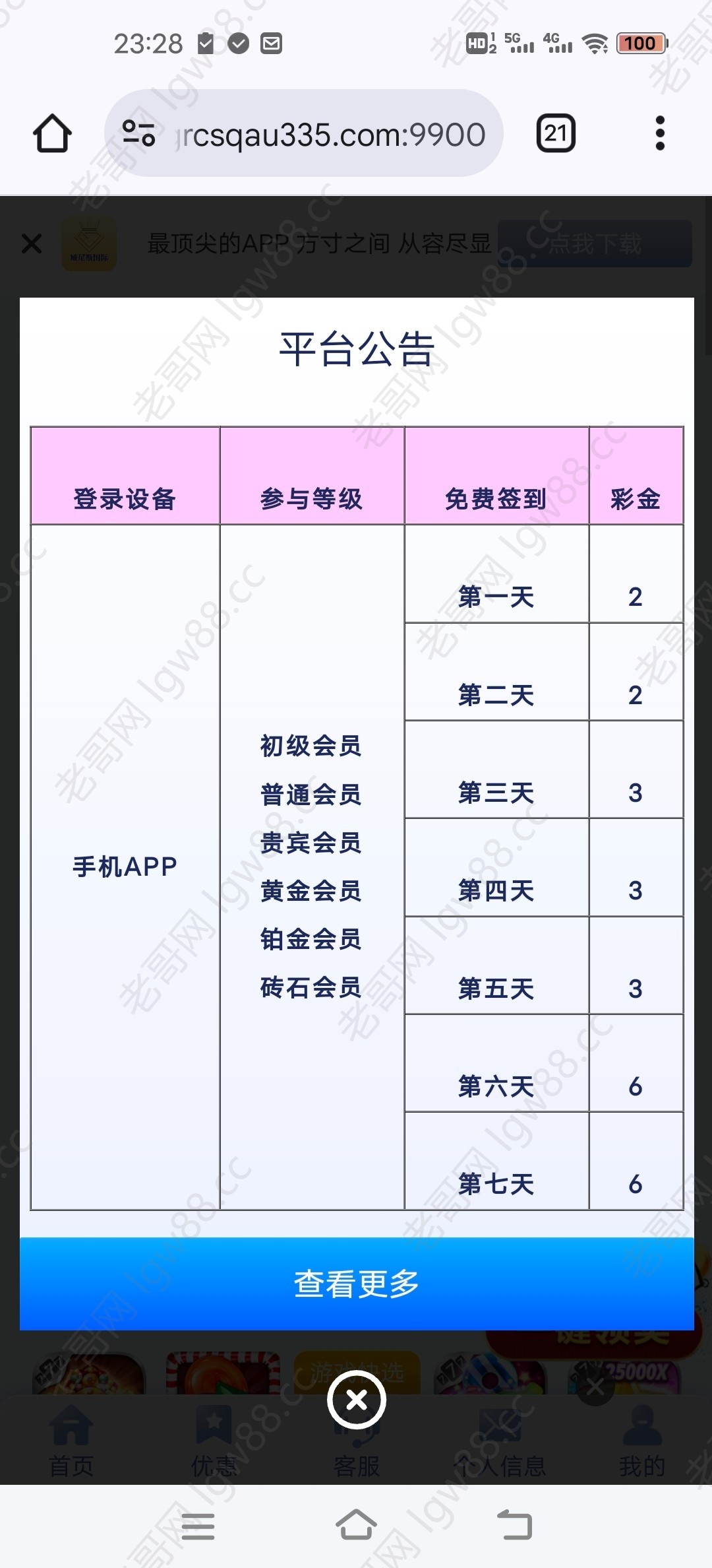 活动入口在优惠里点开右上角,网页打不开的,可以在论坛首页搜索威尼斯国际之前的帖子,里面有好多网址,判官老哥把这条评论置顶一下,活动是2.17-2.23。也就是从今天开始到23号,今天不领估计会少领一天。