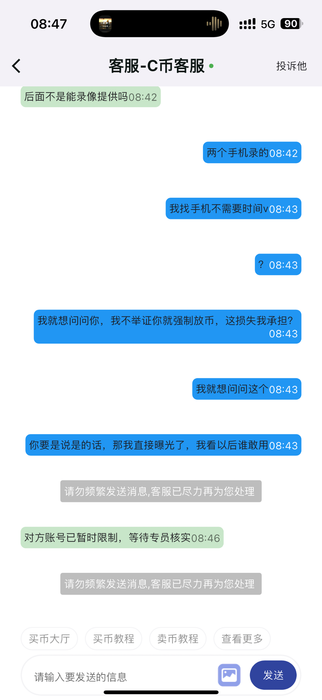 对方就上传了一张电子回单截图,客服就强制放币,农业银行录屏是模糊的,是因为农业银行不让录,在我找两个手机的时候给他录屏,客服就已经强制放币了,死妈钱包避雷,我视频还没录好就强制放币