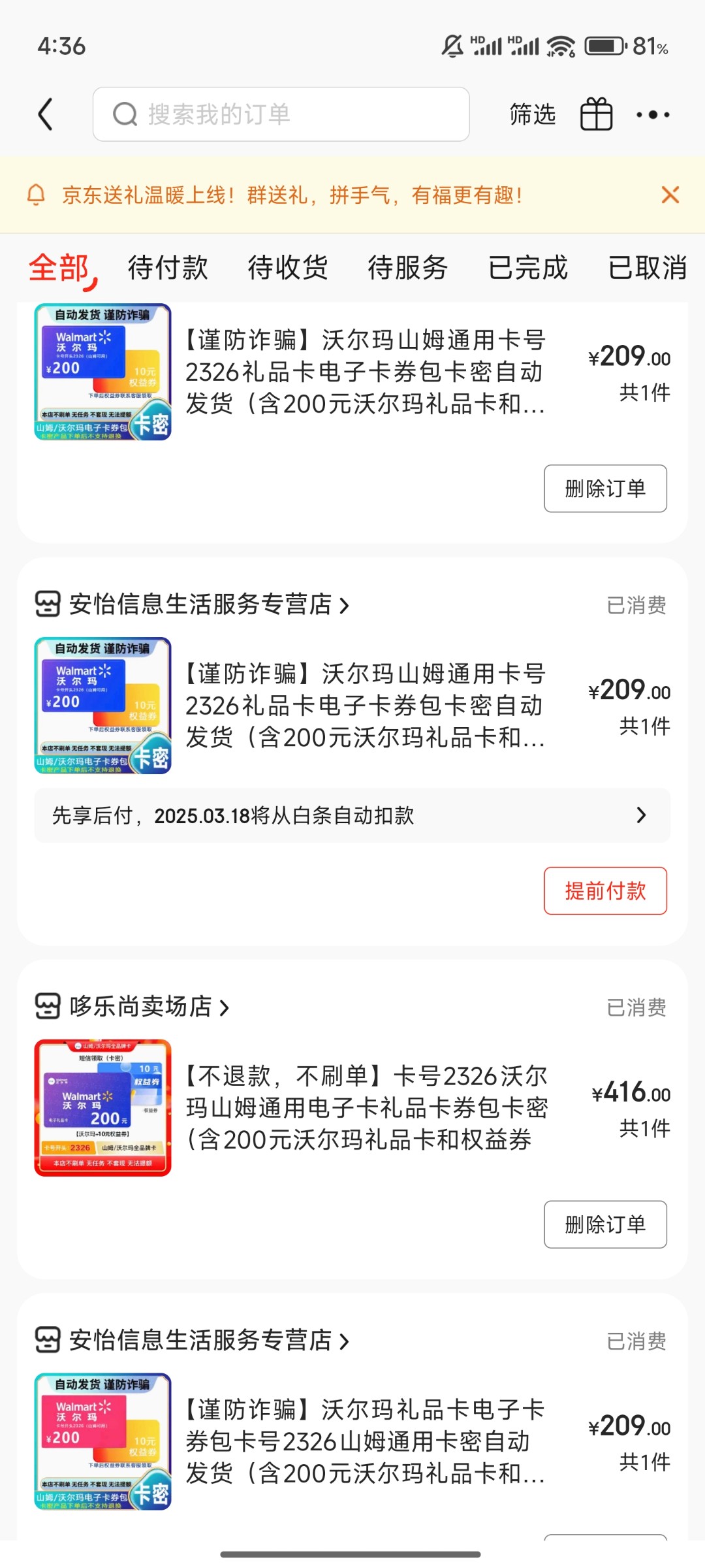 最近一段时间喜欢挂壁了,然后去京东用白条买沃尔玛卡密200的去打狗,但上分输了不怕,就怕被他妈狗庄撸卡,沃尔玛卡密掉单,去找狗庄没用,狗庄会说你卡密已经被别人使用过了,恶心死了,最近用了几十笔,掉单了4笔,总共800块钱,皇冠227被吃一笔,澳门百家乐7737被吃3笔,这种掉单找狗庄没用,通道吃的死死的,掉单只能当喂狗了