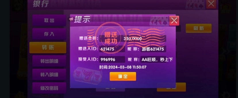 体验金打到了200w,找了客服充了20,打一会就下了,也是成功到账