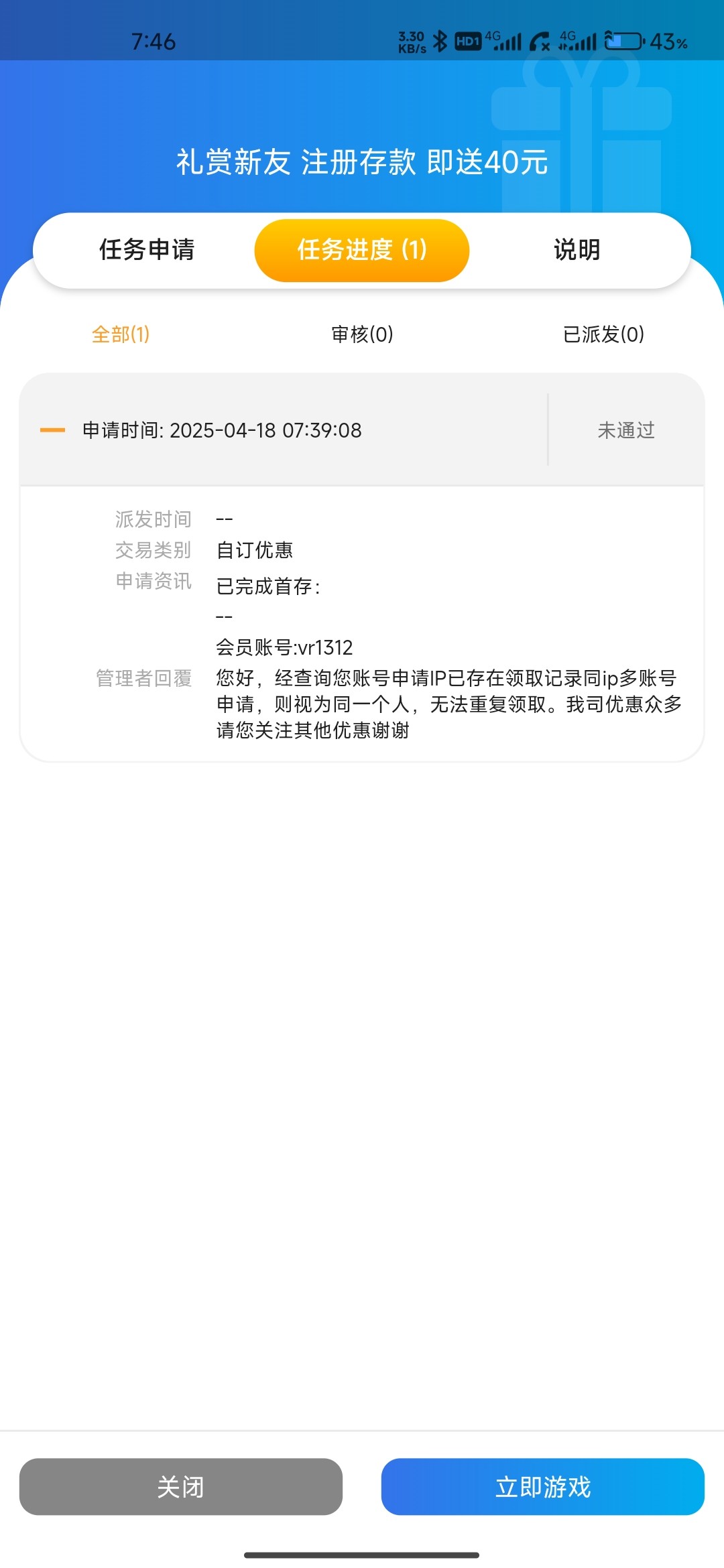 充了10,申请秒拒绝ip多账号。10拉提了100多,看看到不到