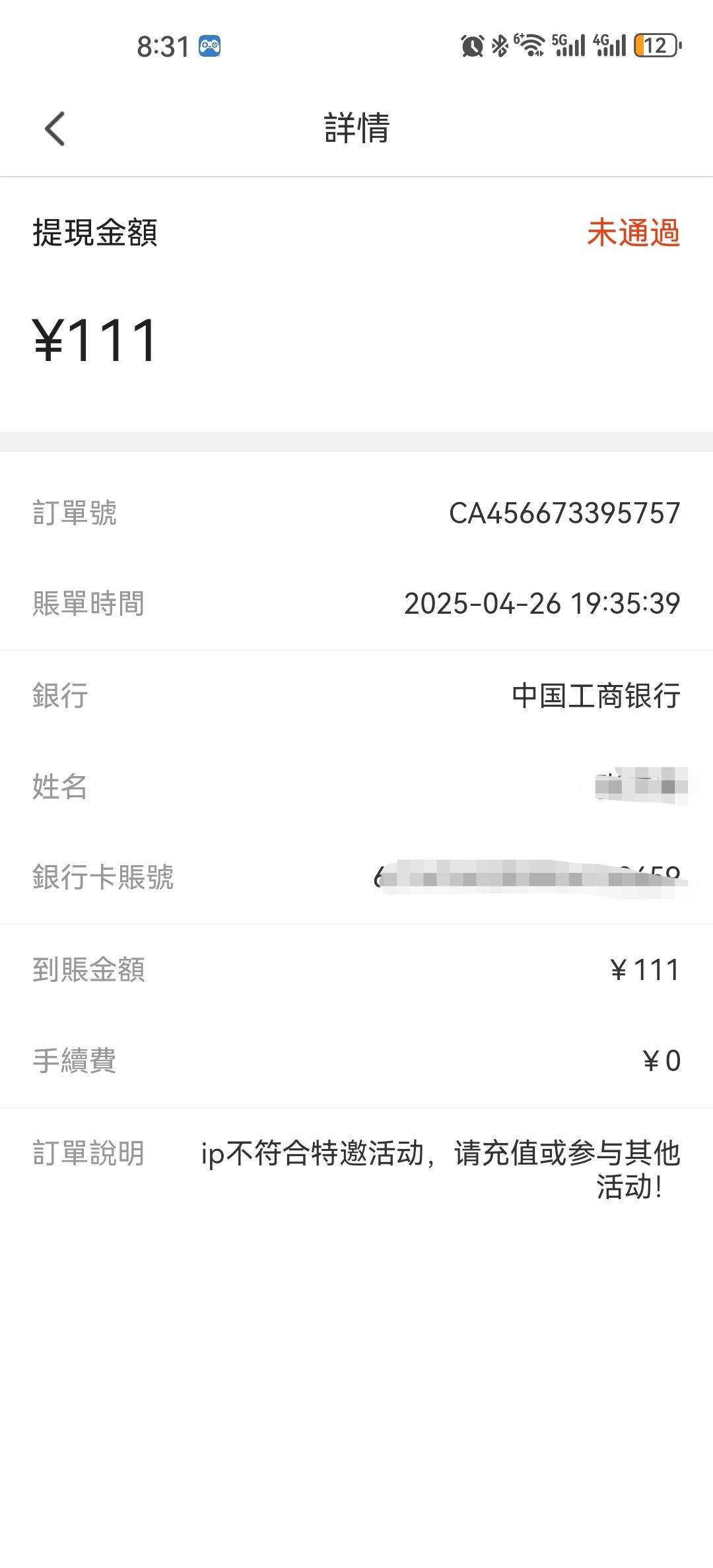 提现失败,充值去看逼都不让进