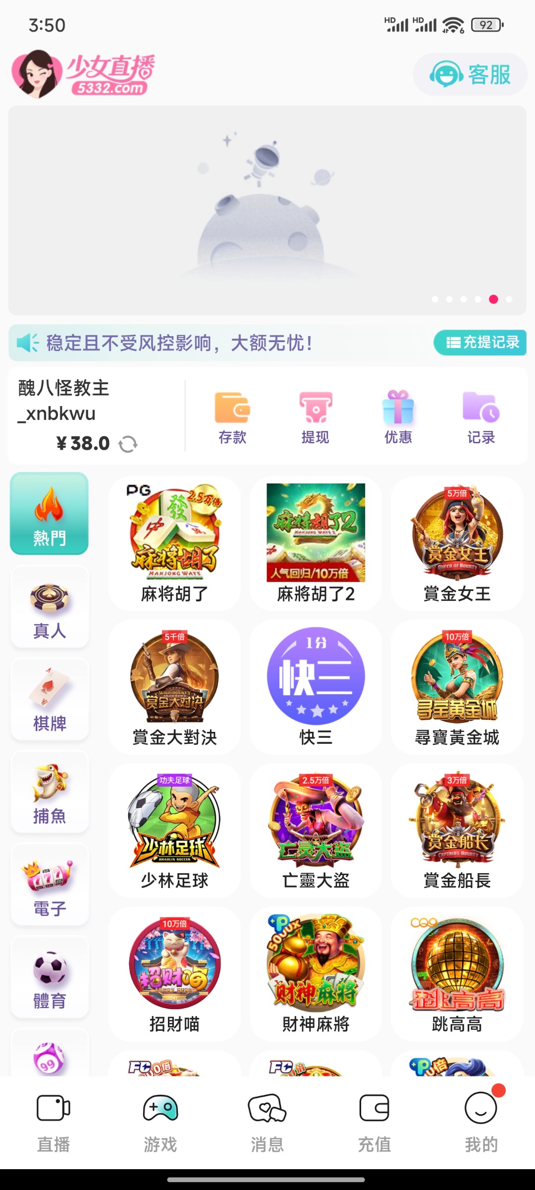 黑平台来的,我38打到300提现说只能提100,提了100又说多I p,让我充值正常玩,充了10块搞到900还是不让提,黑逼