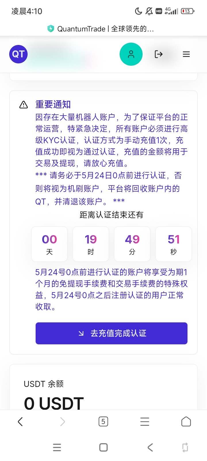 要充值10u高级认证