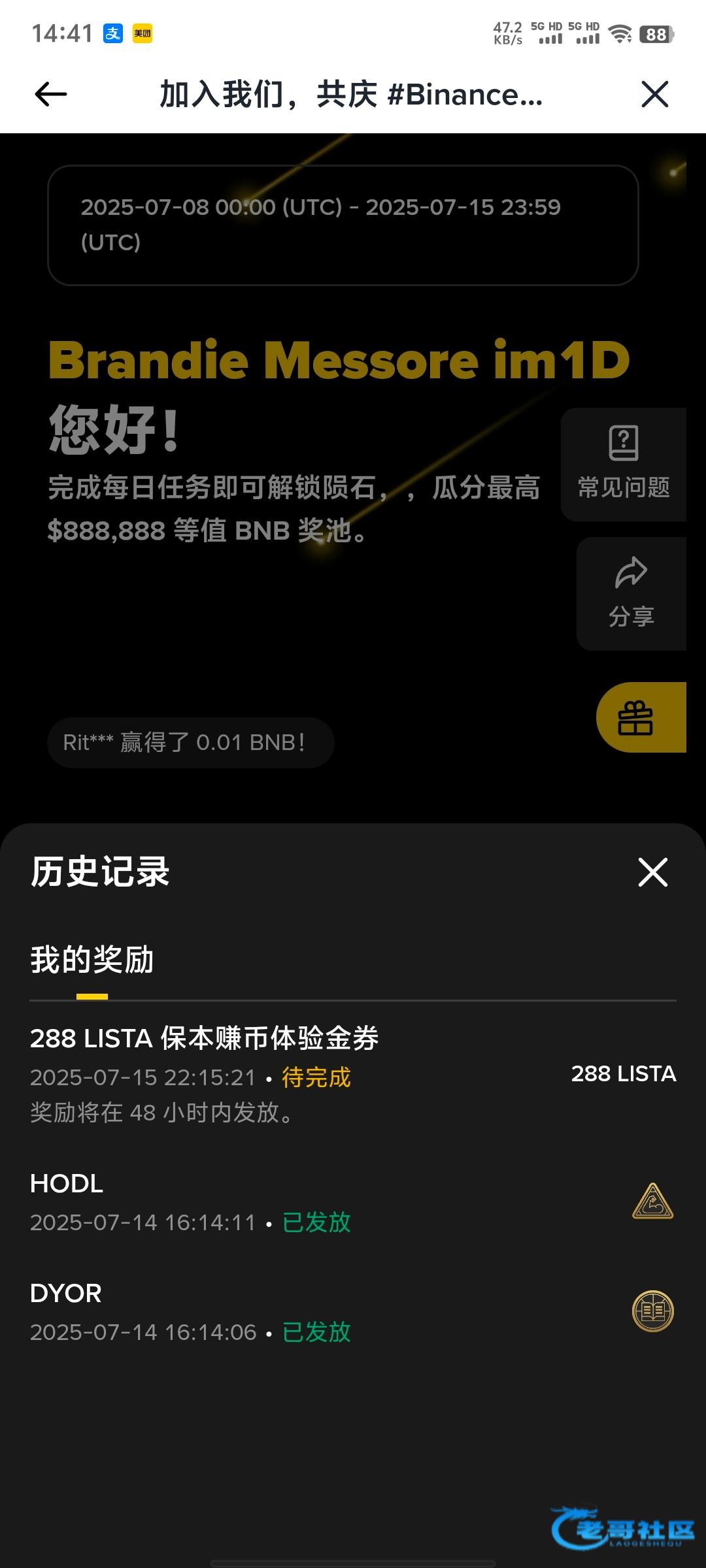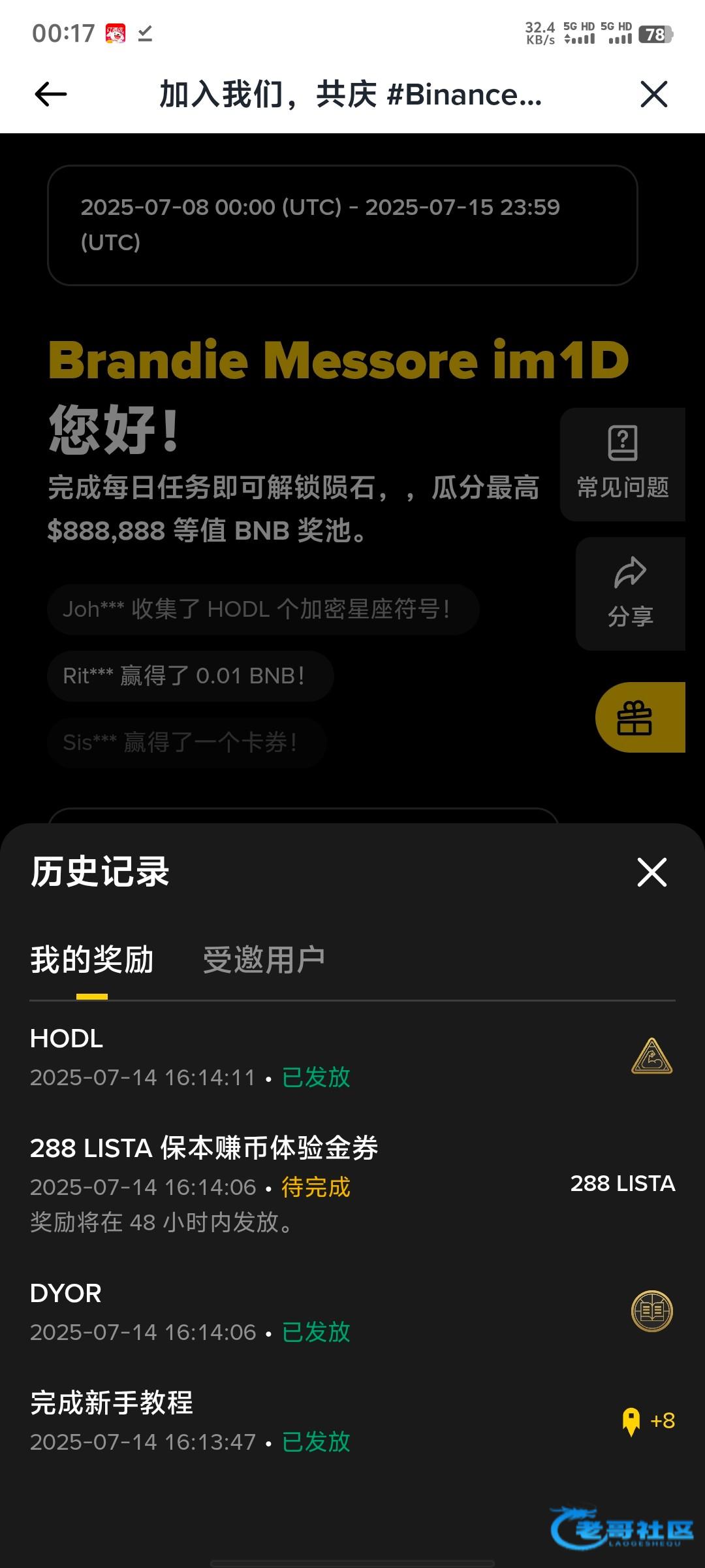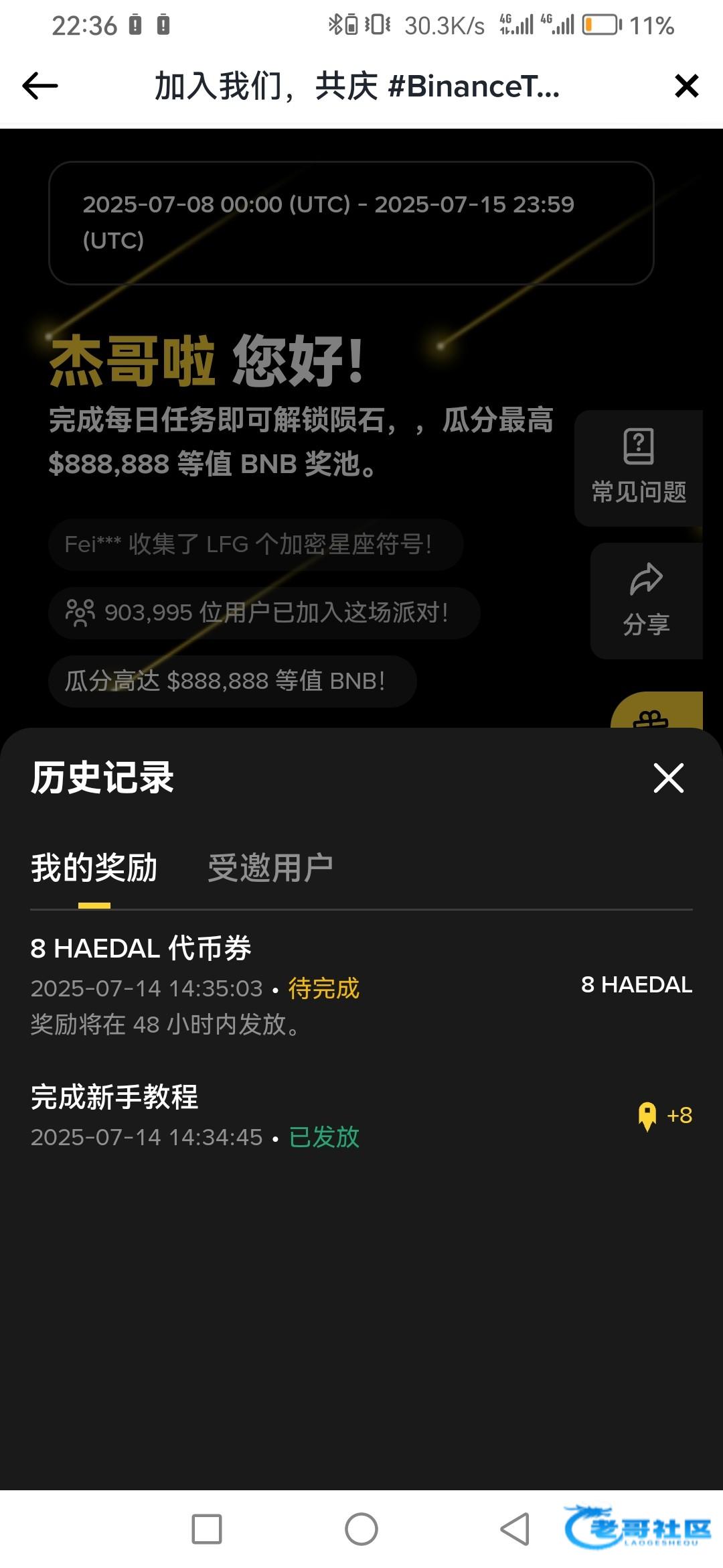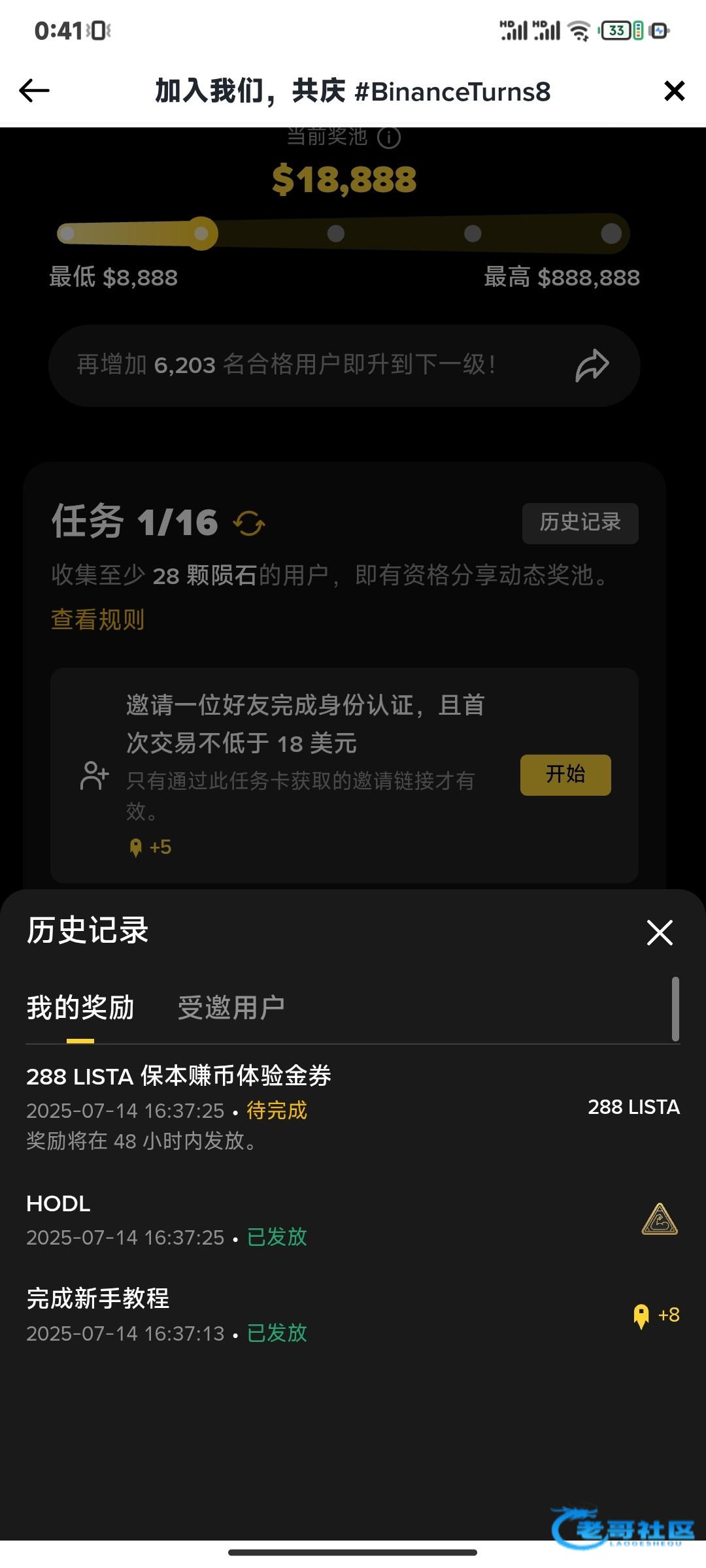 有币安的可以去弄那个首页八周年的活动过新手让我我已经到账了