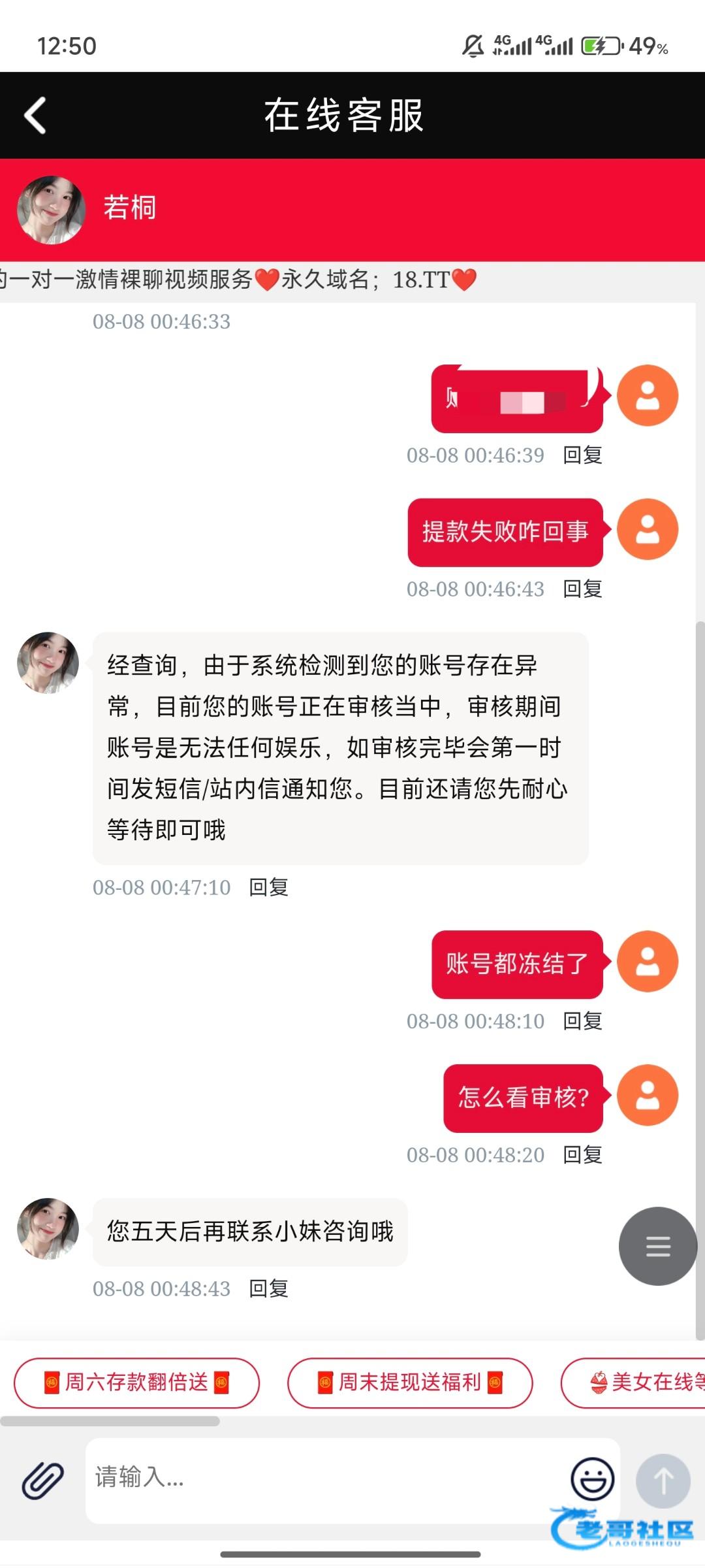 申请回归活动100+18,然后去玩pa真人想着过两关提现,然后过关成功提410,等了一会没到账发现审核失败,当时感觉不太妙问客服,客服说账号异常审核五天有类似情况的吗?