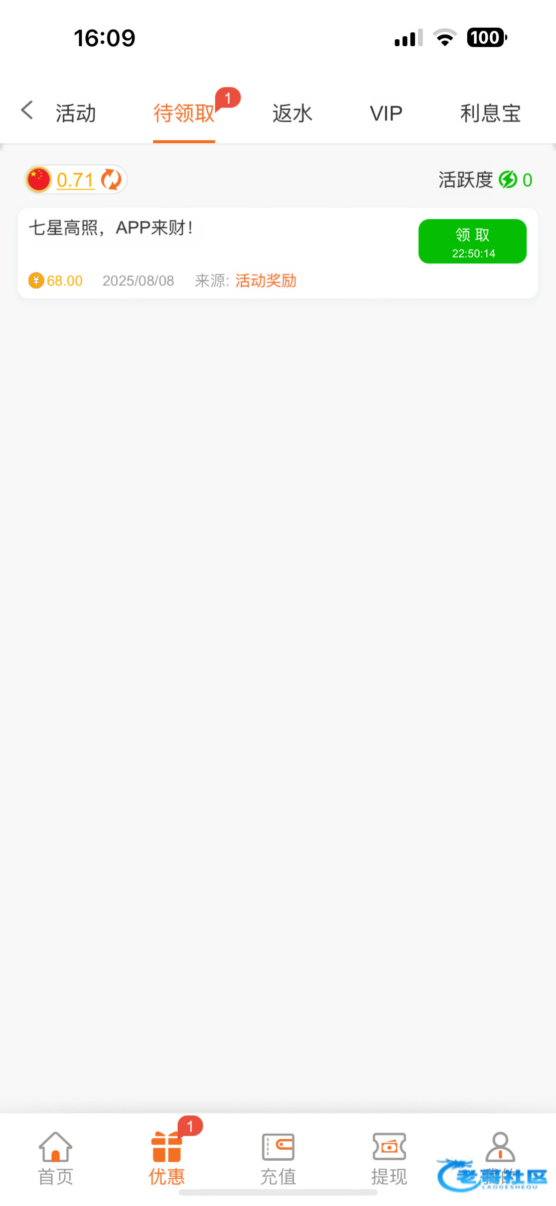 周周周zzZ ▶ 惊蛰 长时间不充值然后领彩金玩是这样的 提现充10块试试 或者是领彩金之前充10块 我直接提了都出了 7月前