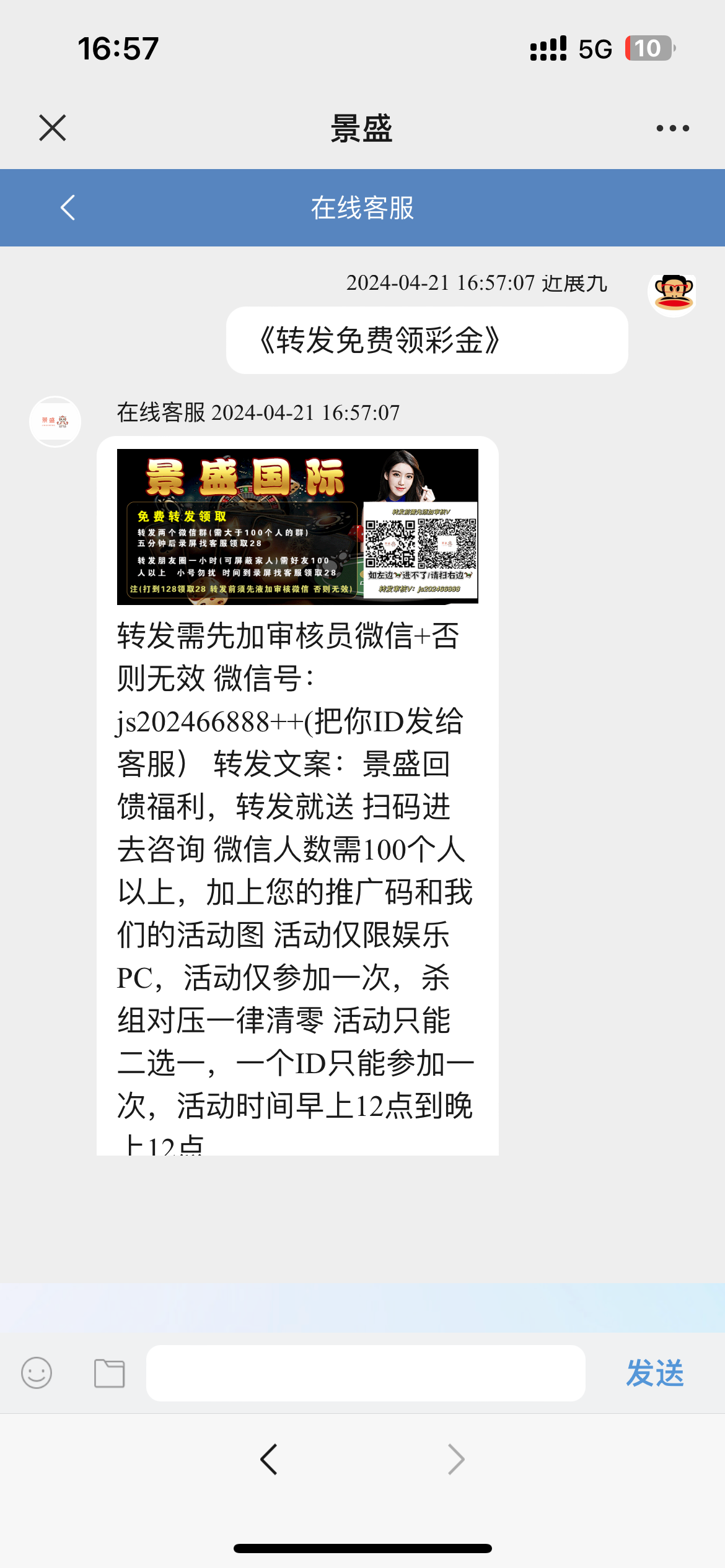 发朋友圈送28 发的时候加微信客服 把朋友圈设置成仅他可见再发 然后用老哥网首页的撸彩工具p图领