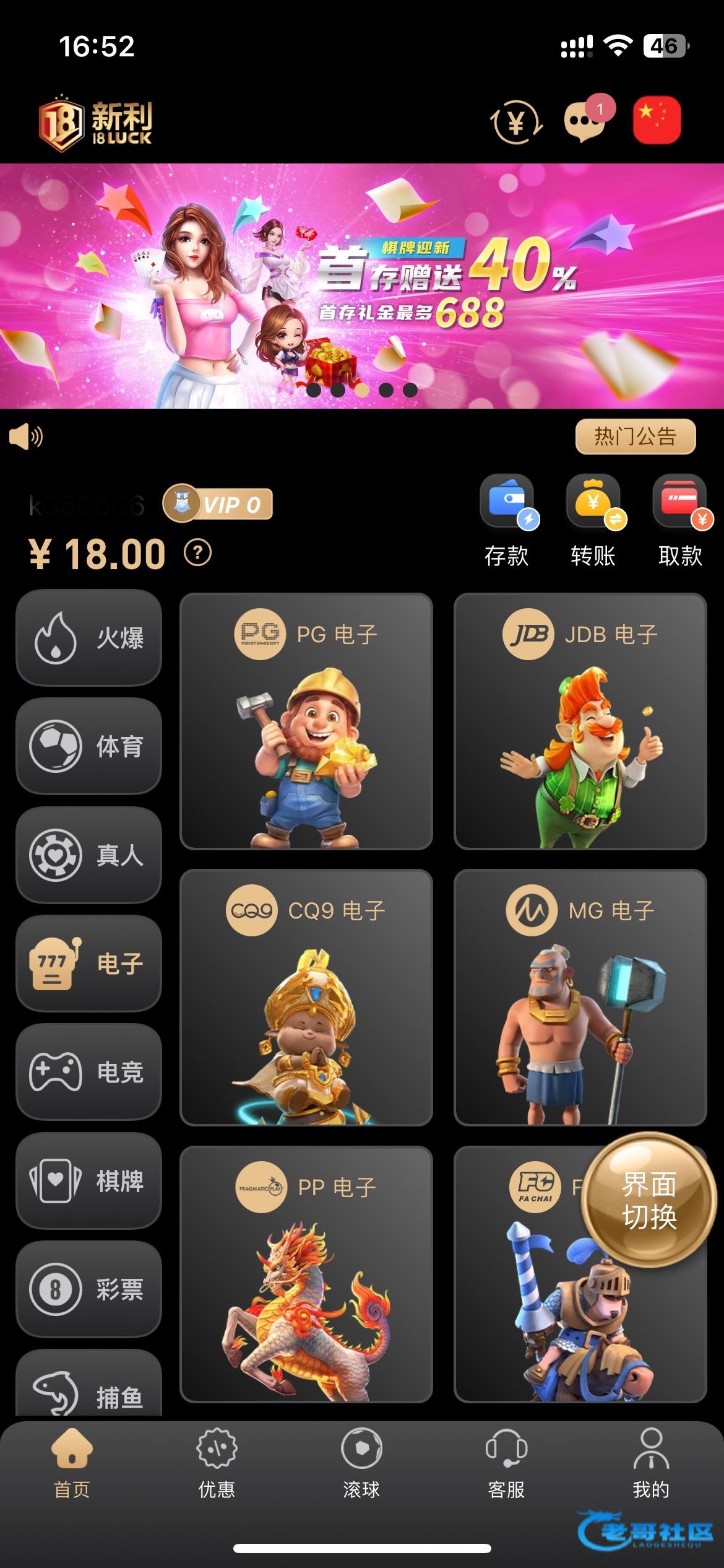 不用找客服绑定手机号和电子钱包优惠里面申请就可以了 我一分钟左右就送了 没打出来 不知道能不能出款 自测吧 网址18luck.cc