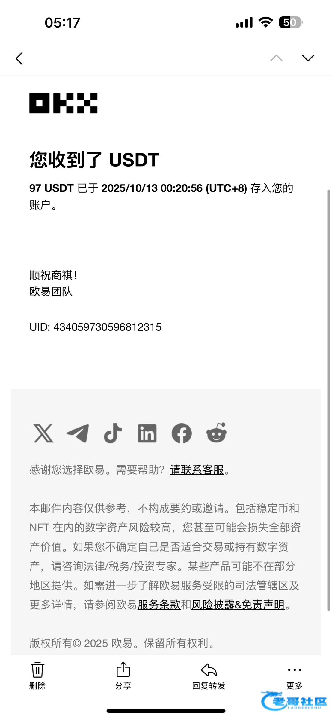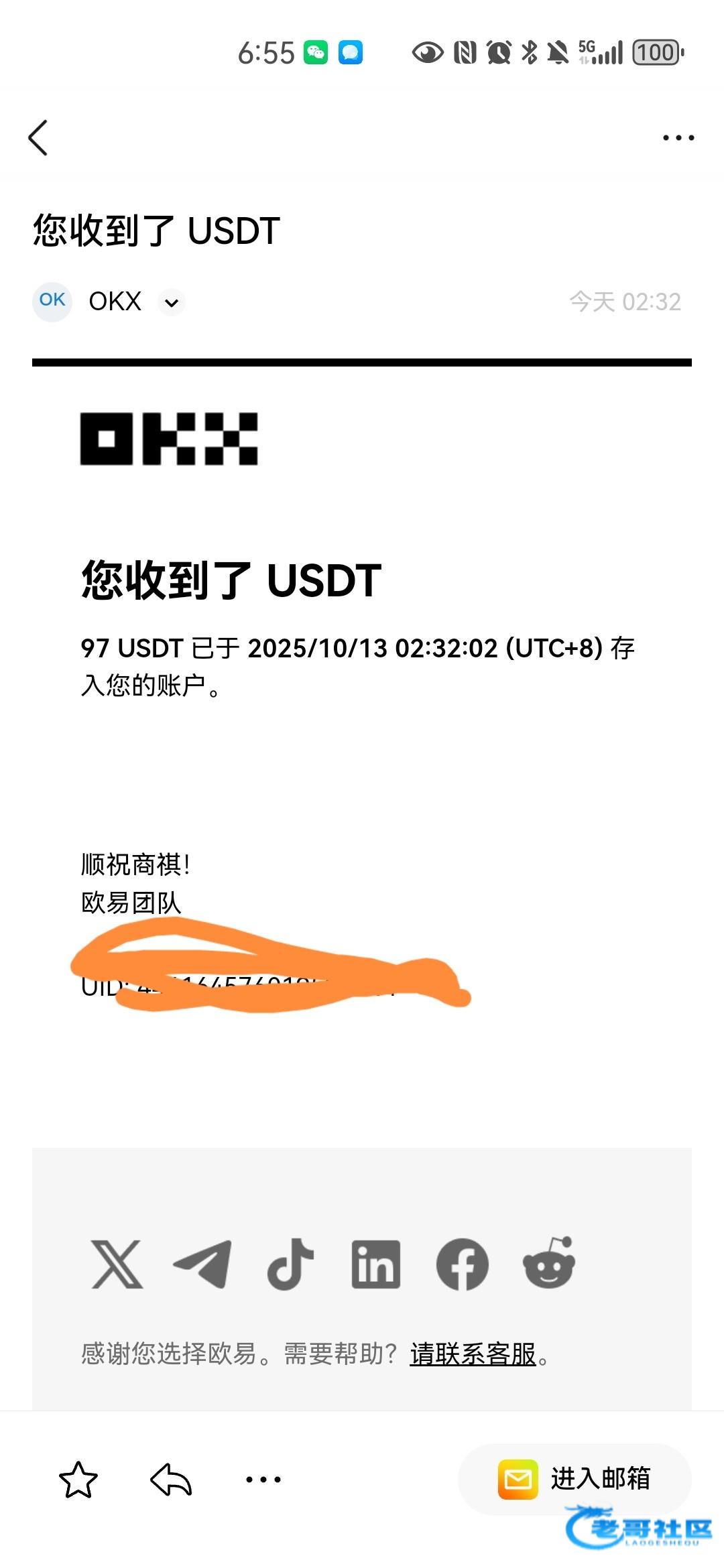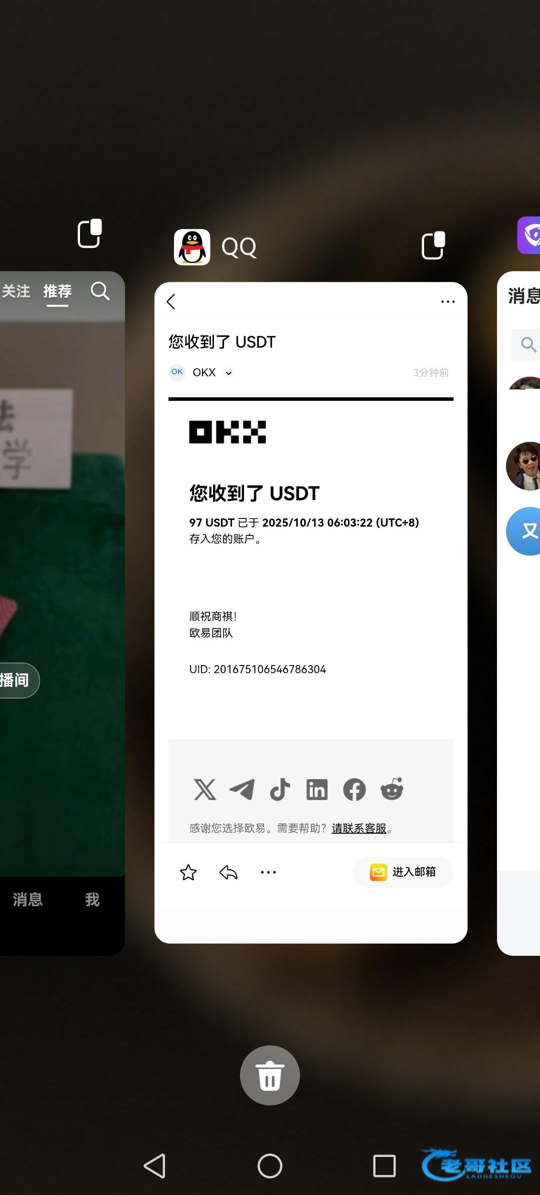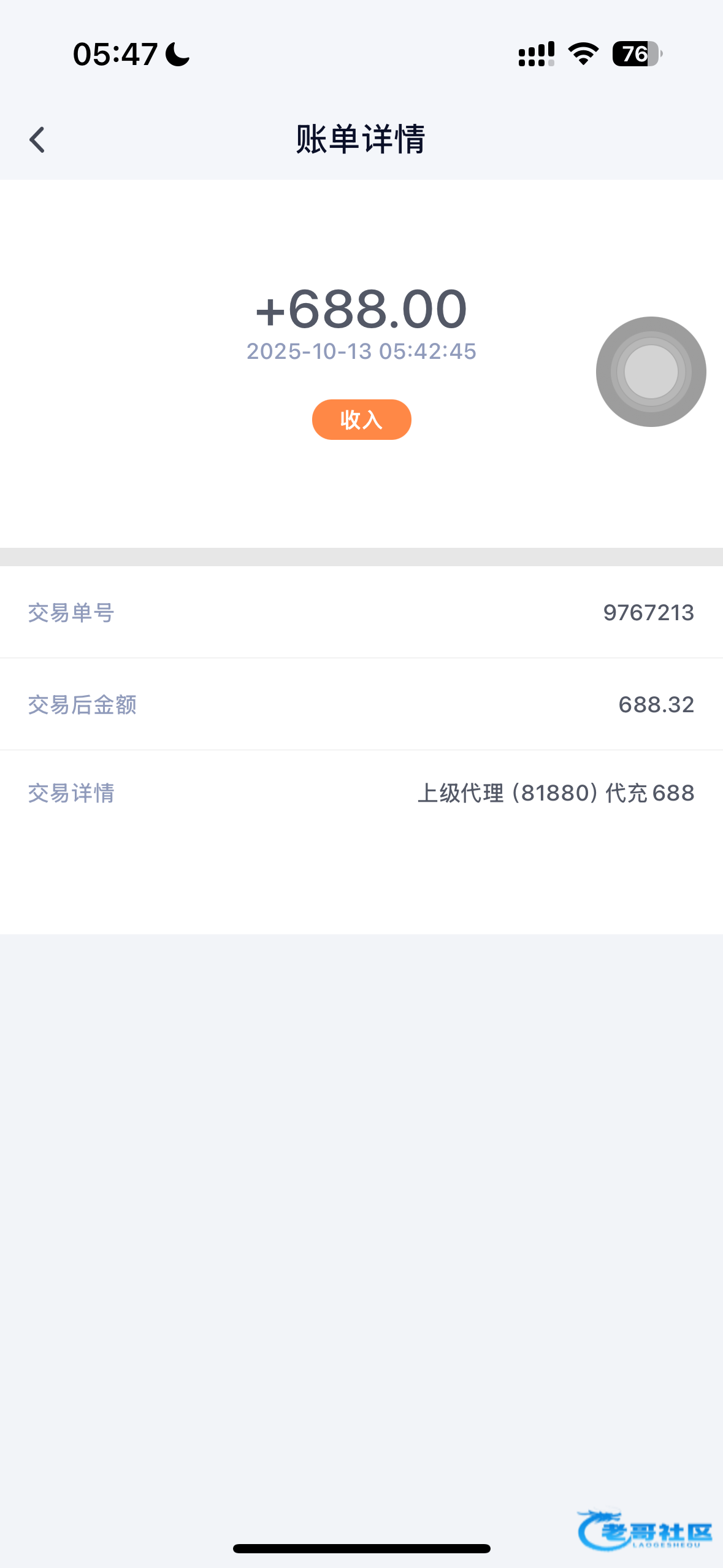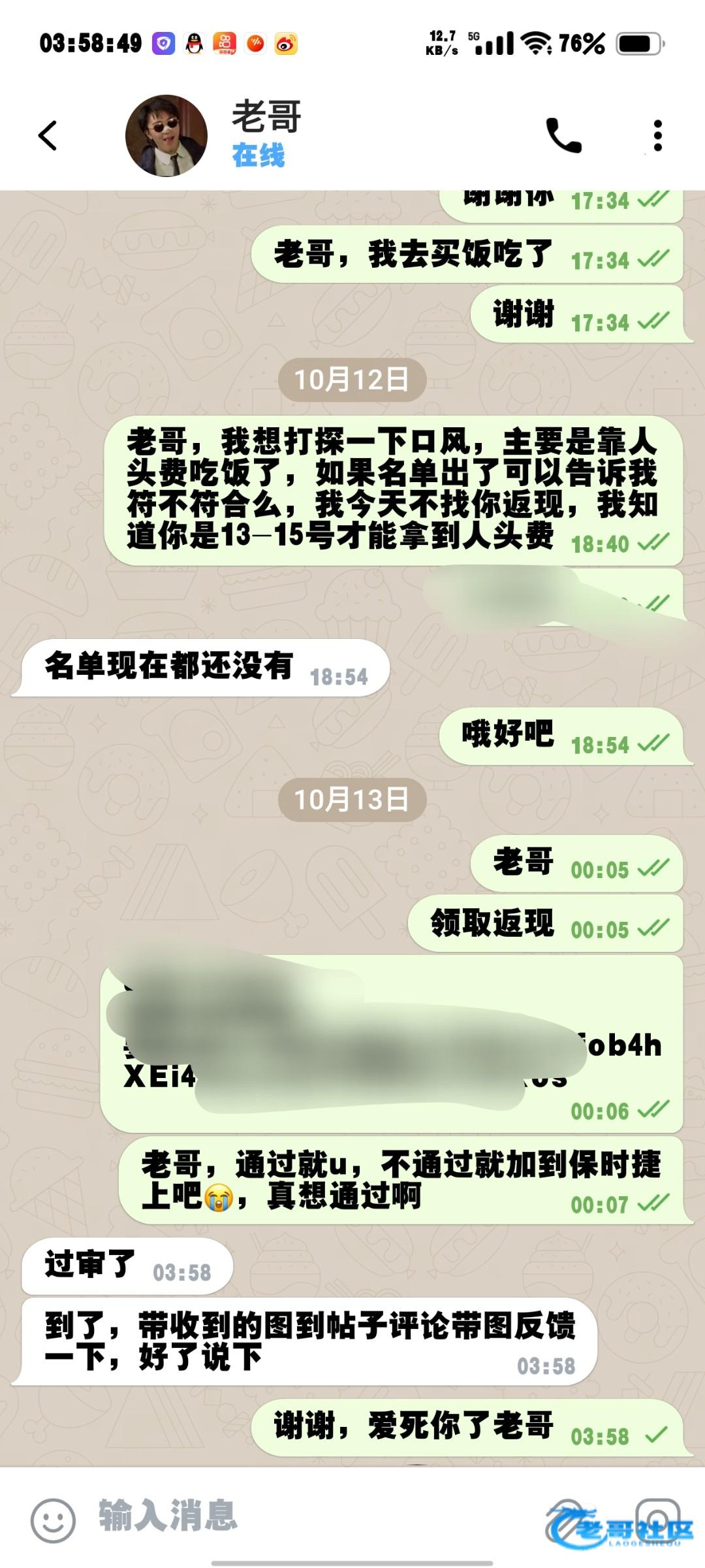收到老哥返现,