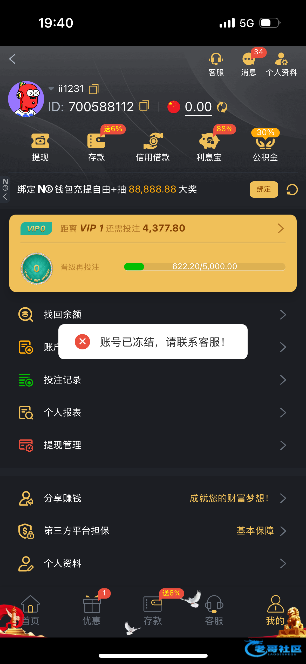 黑了,冻结账号,大爷的