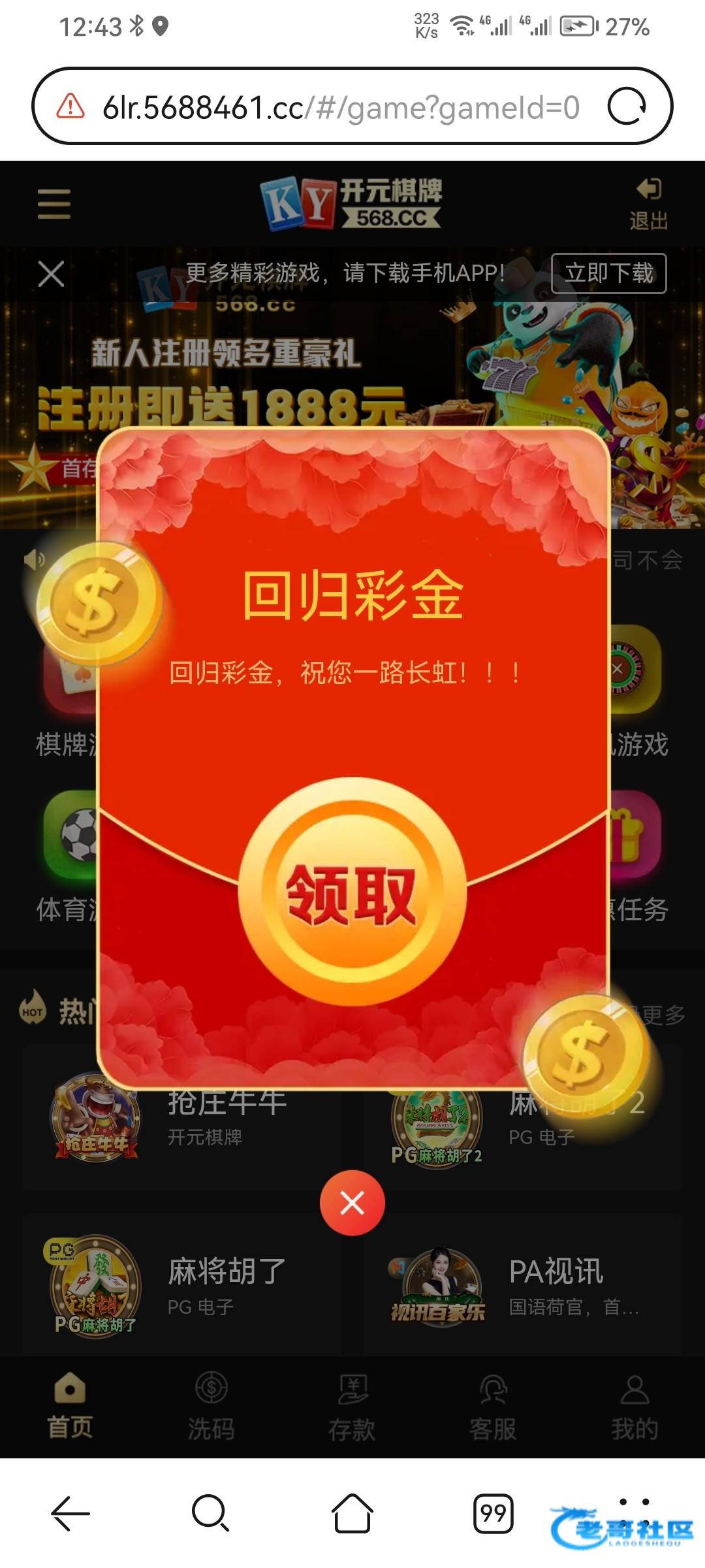有号的老哥们上号看看 网址568.cc 最后一发0.6进胡吃上一百 提现到账了