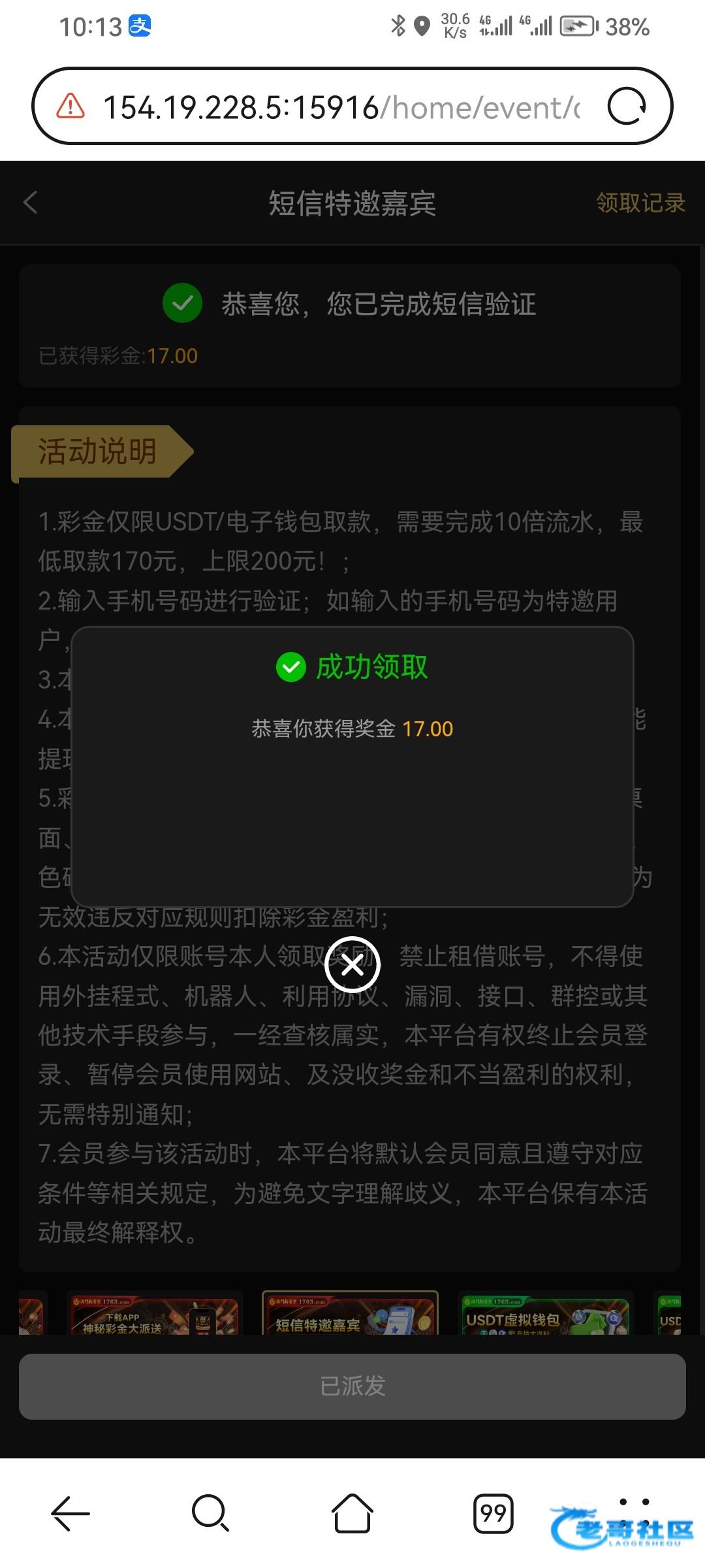 显示手机号用过了,反撸20