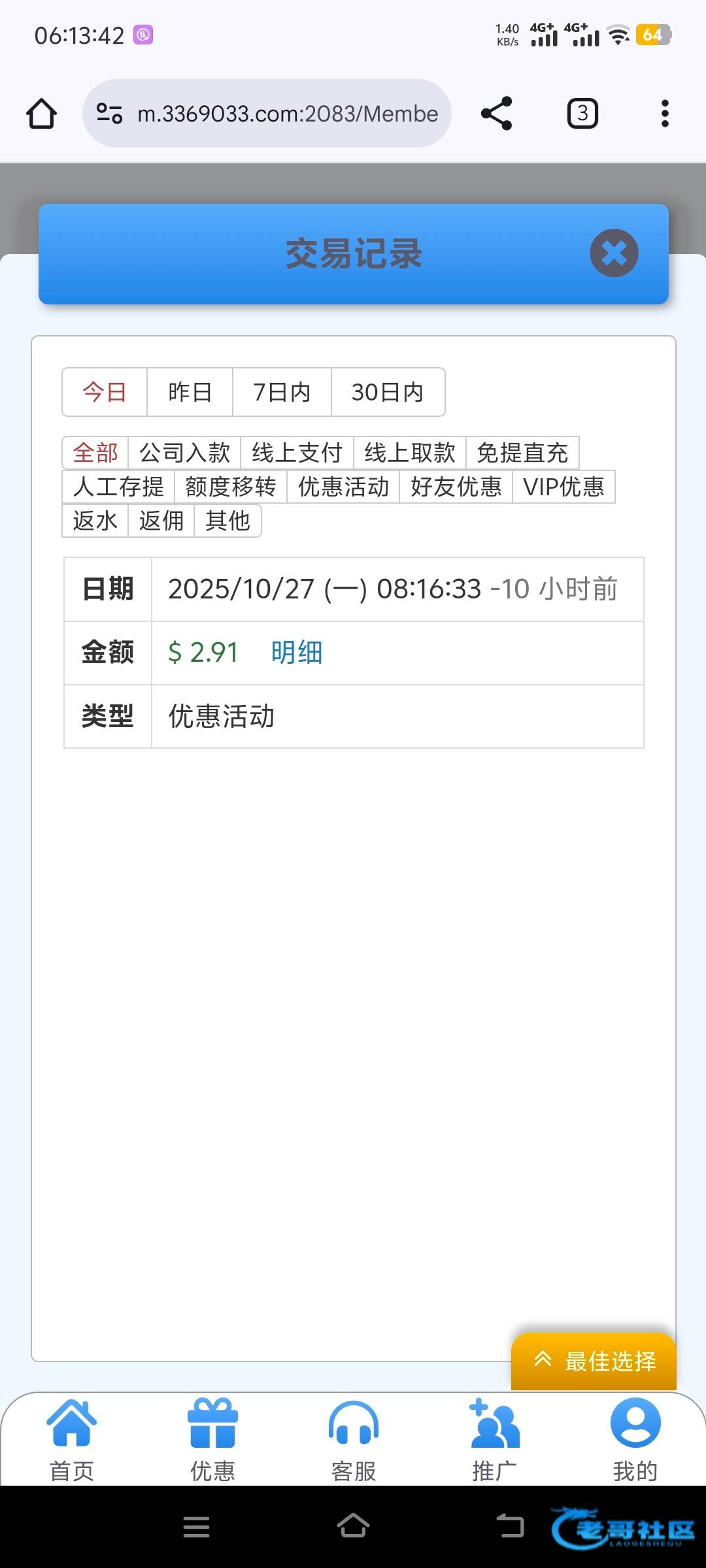 历史充值过,接到电话送了28 有账号可以碰瓷试试378.com ,最近半个月不管在哪里玩充值都没提款过,好不容易赢点还是黑台不给出款