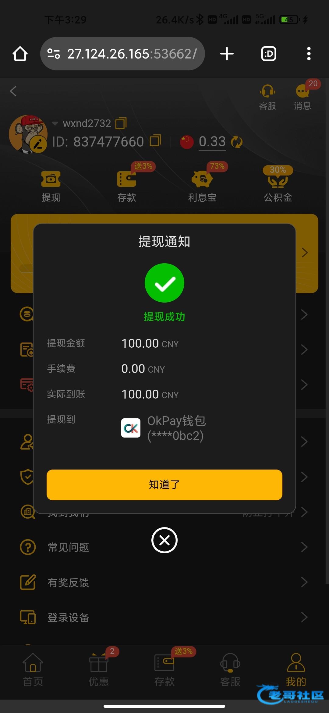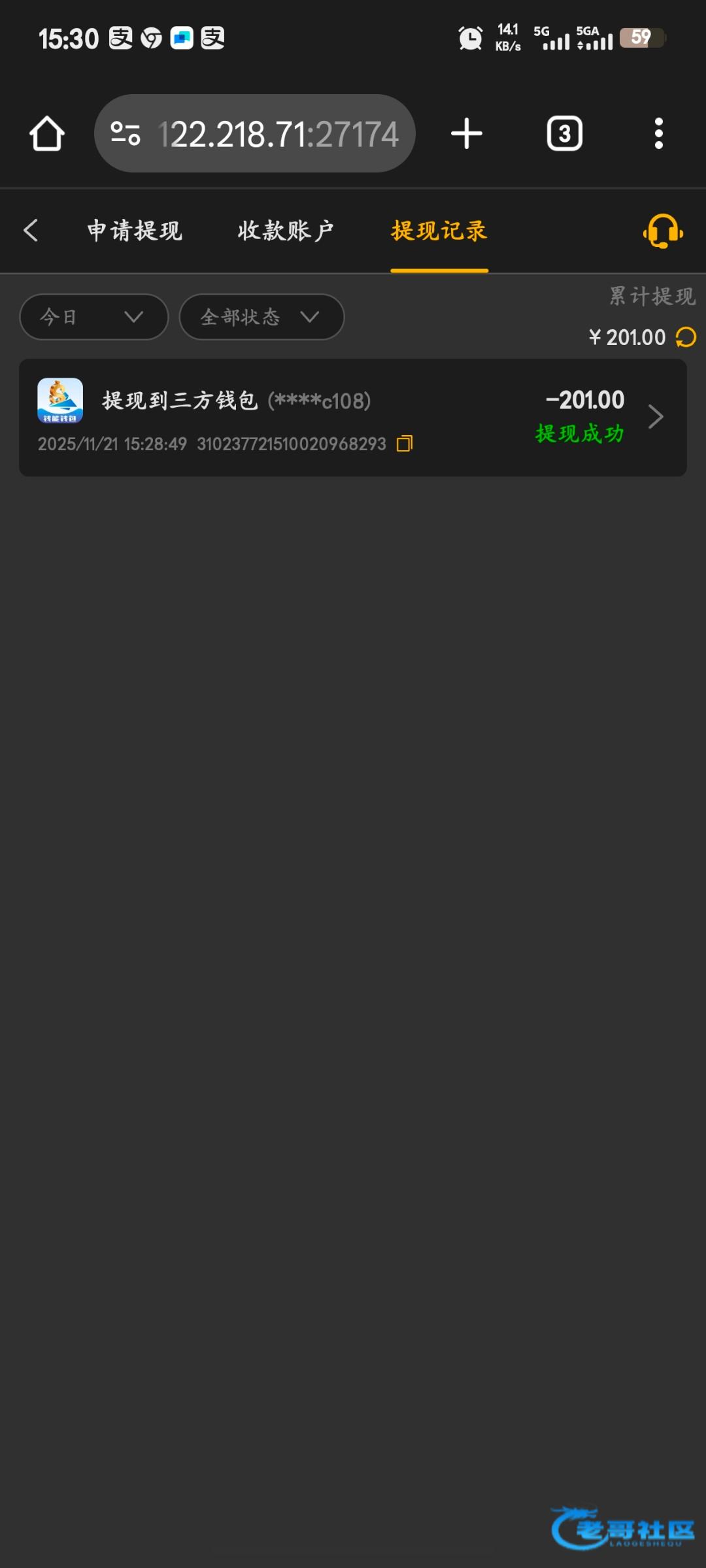 提现了,不知道能不能到