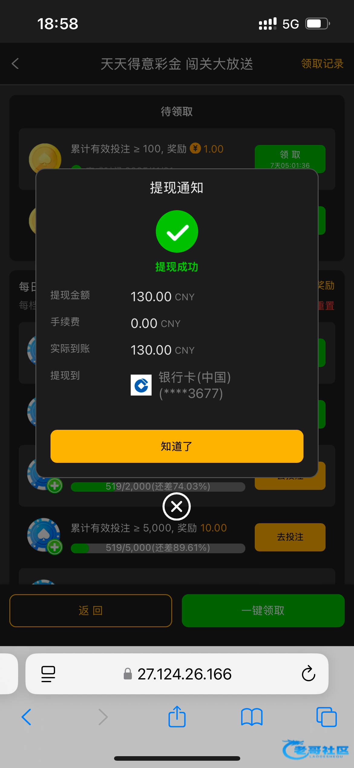 领到了,1元,打上了15,提现需要159流水,继续努力