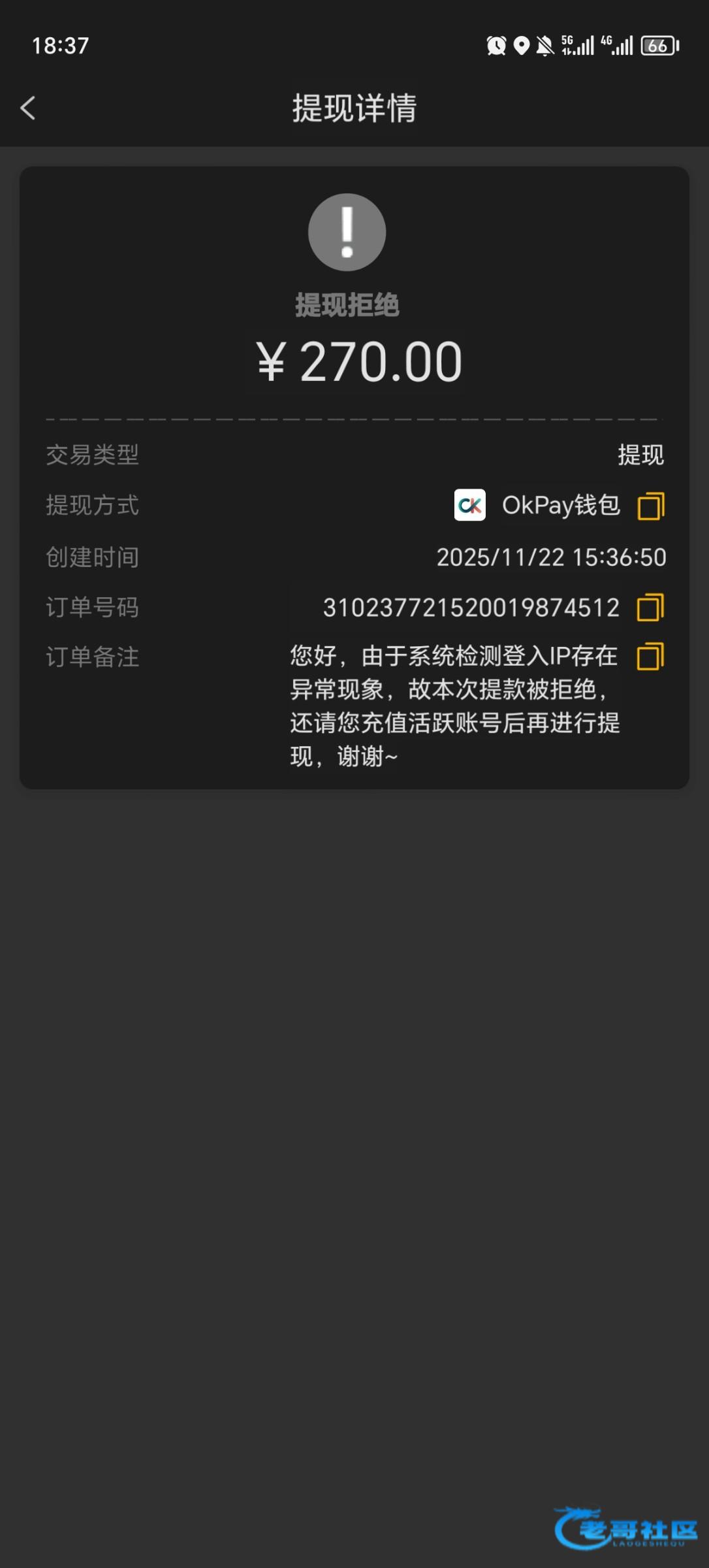 打到100充了4没钱 提现100到账了 回充挂逼 操 还以为有水