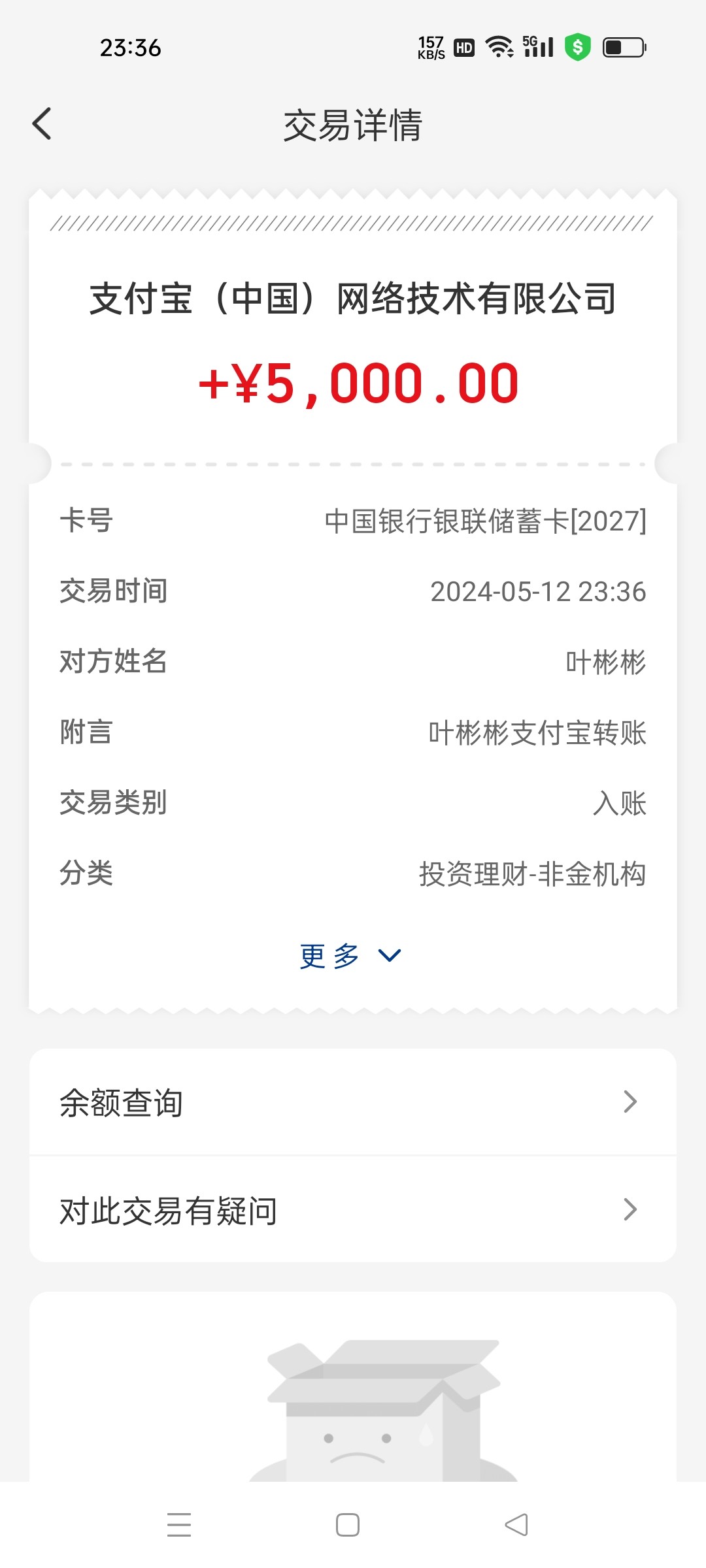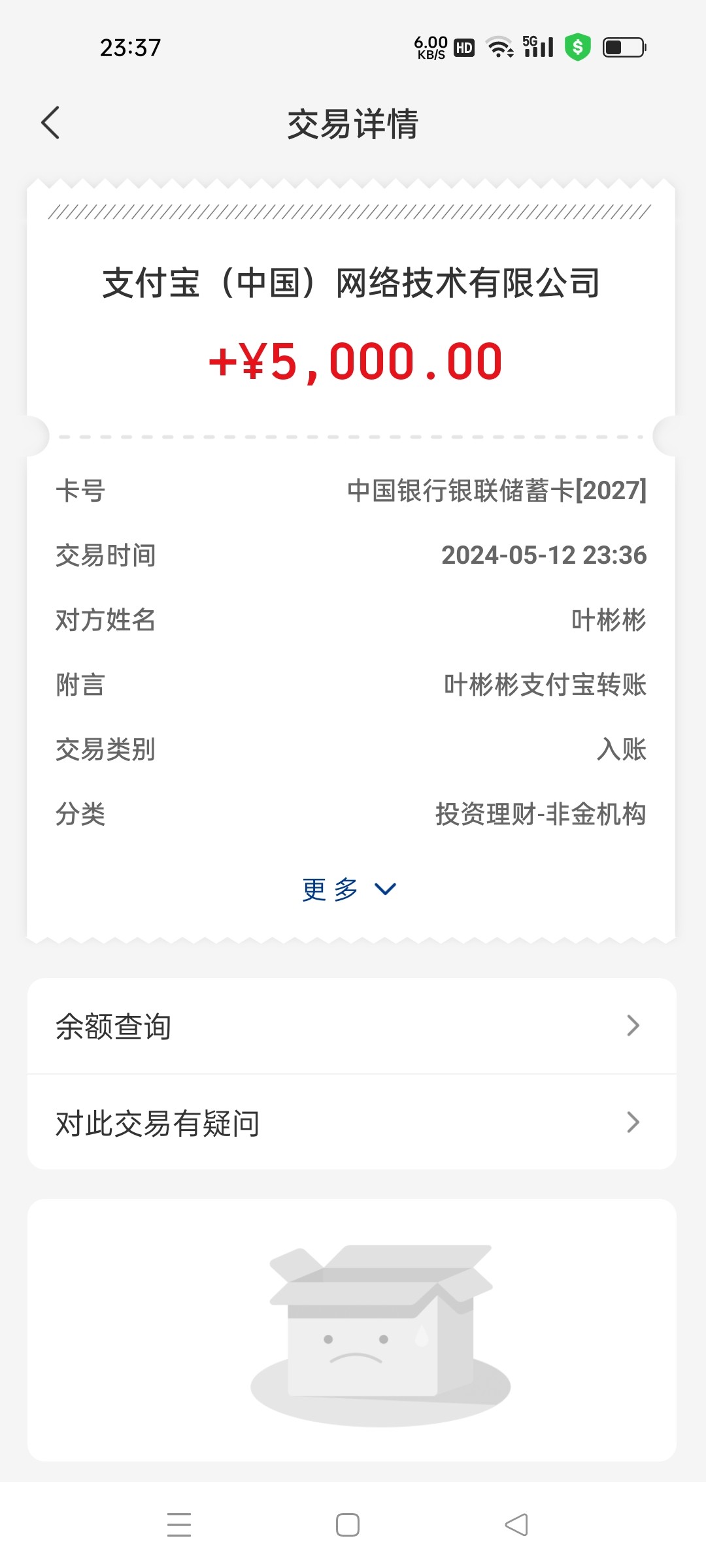 牛逼,真的到账了,8块钱,到账5000