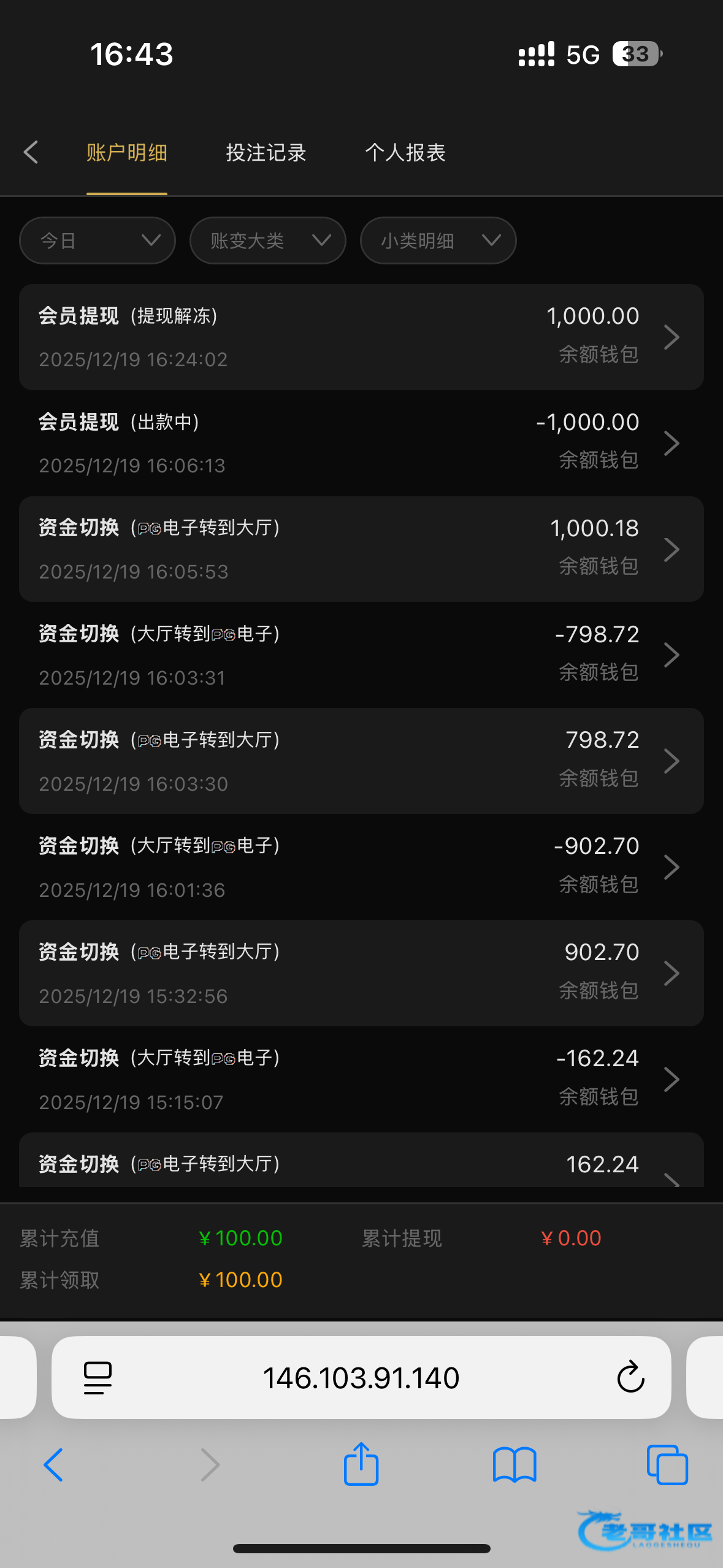 一百提1000直接冻结