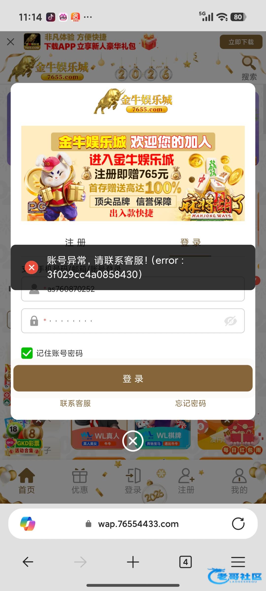群里老哥发的金牛注册参加100+100。全程打电子 体现1100被黑。后续参加的老哥请注意。玩不起的东西
