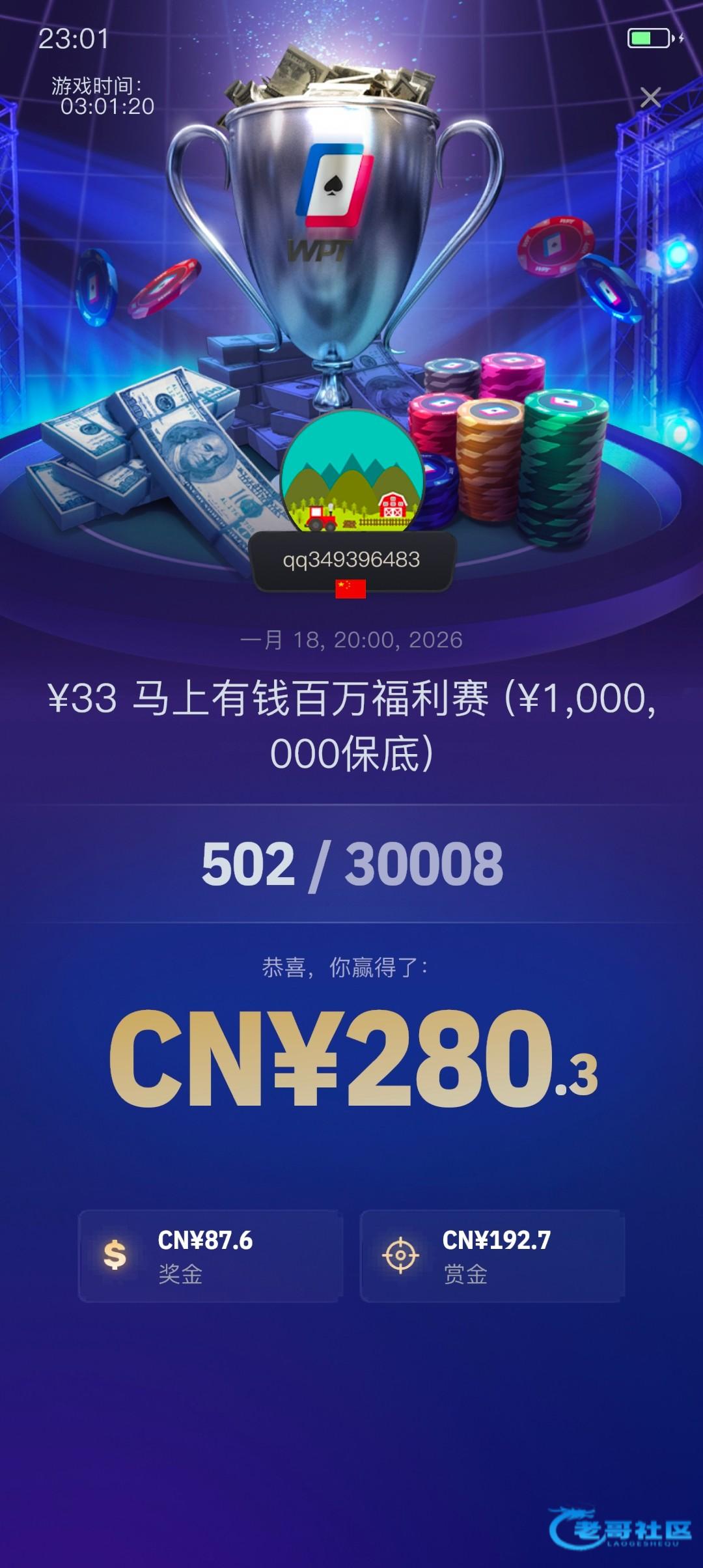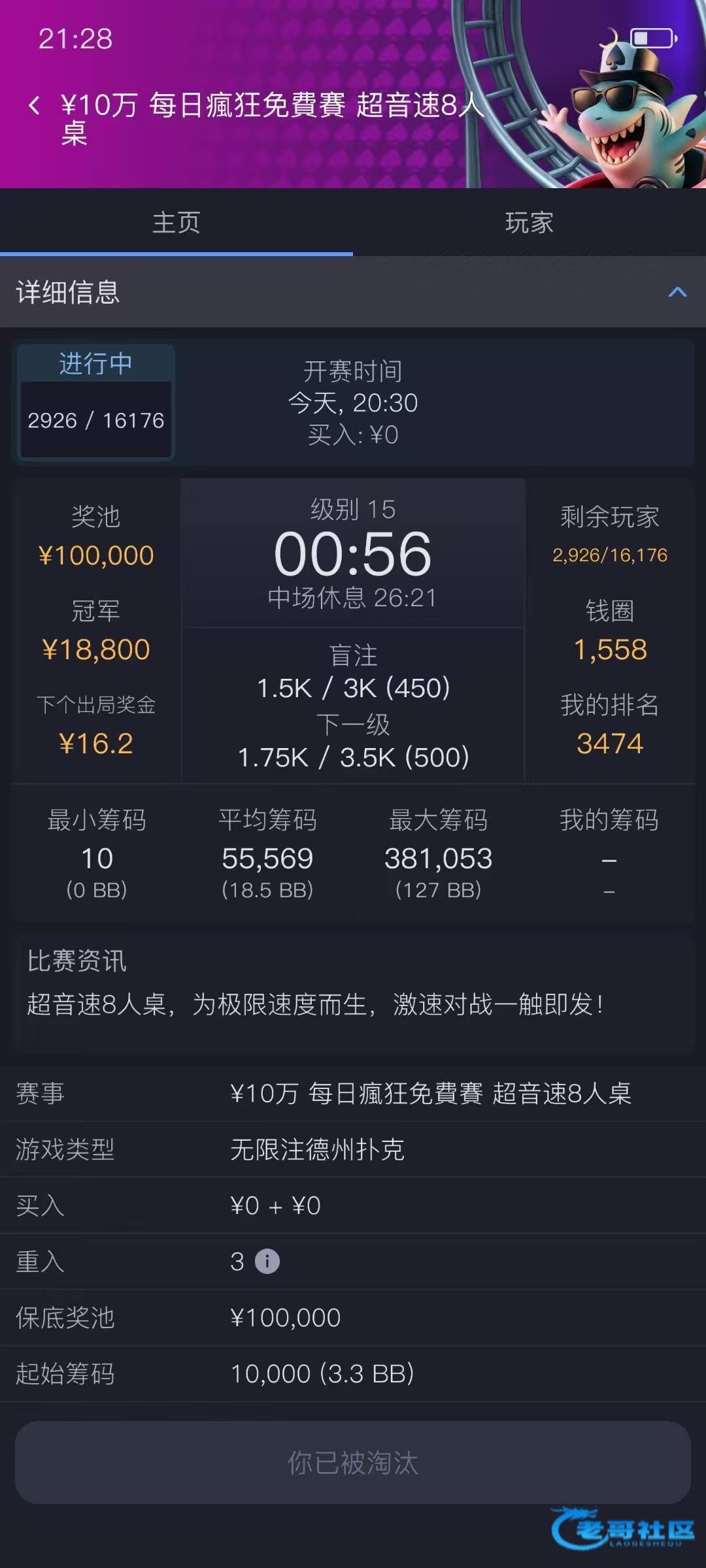 昨天赏金赛打进500名的时候半小时不来牌一把a+的牌都没有后期全是梭哈的你根本没法上,没运气你也无可奈何50多万一把没上最后剩8万打底就6万还是没狗住